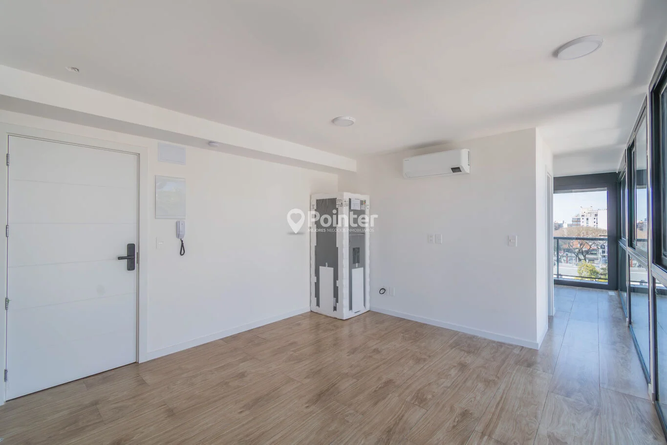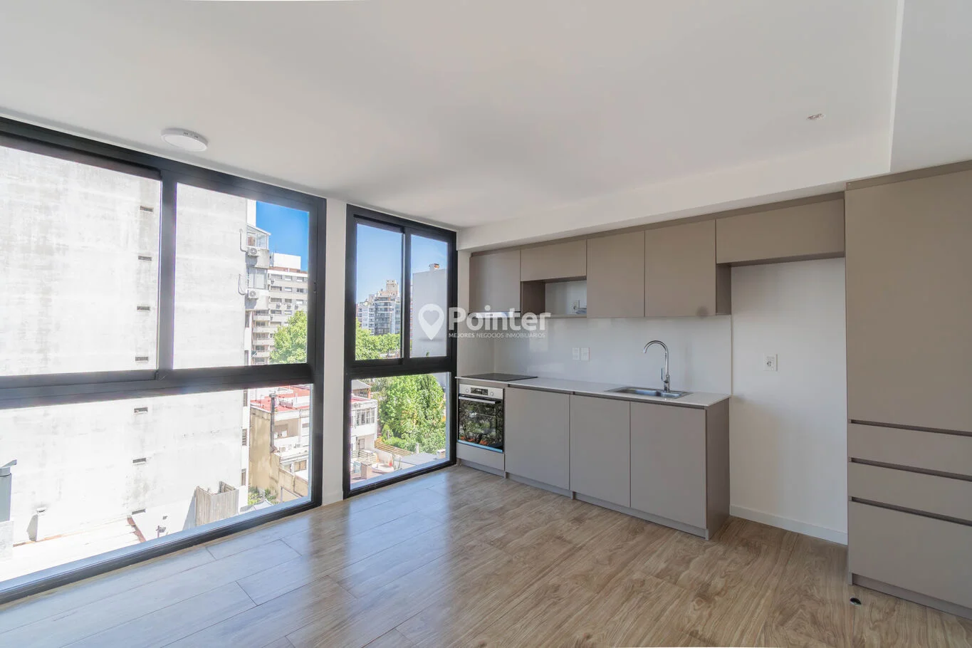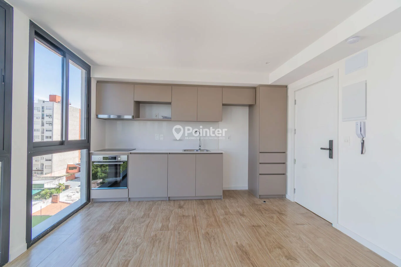 Al ingresar, encontramos una cocina integrada, baño completo con mueble y un dormitorio con placard empotrado y persianas eléctricas, con salida a terraza al frente.