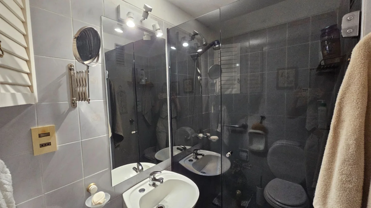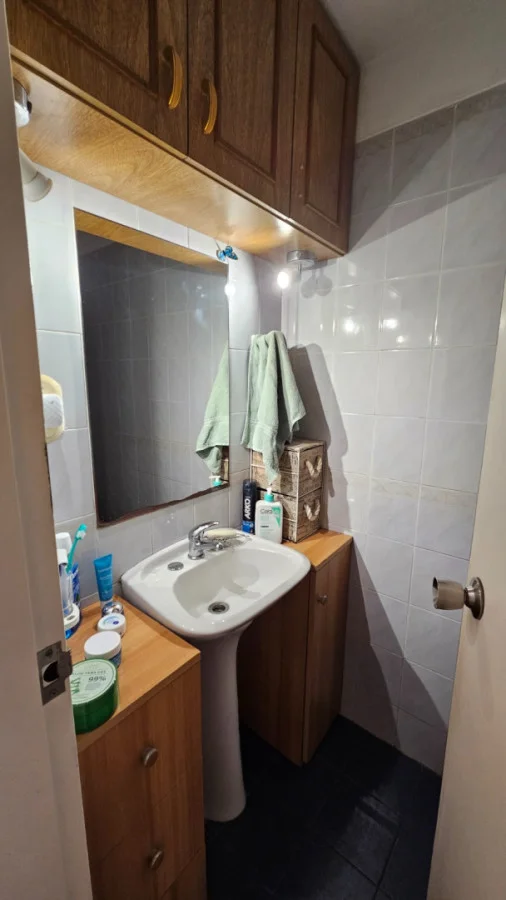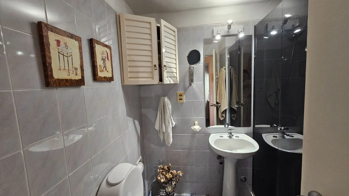 . 2 Baños, uno completo con mampara de vidrio y uno de servicio