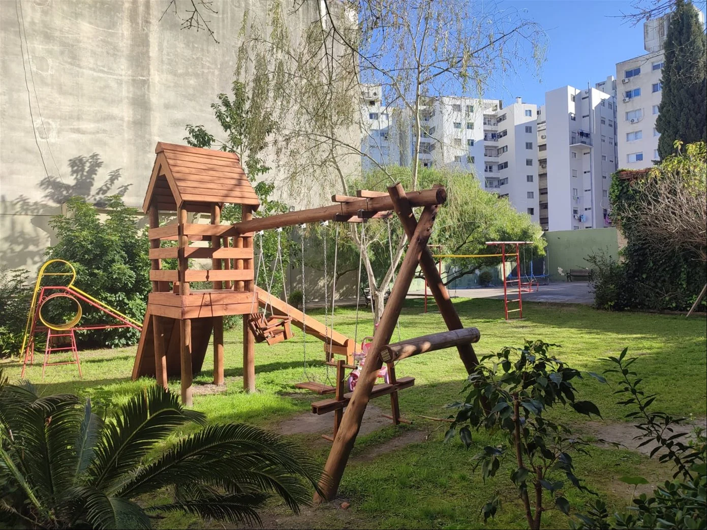 El living es de gran dimensión, medidas ya no comunes en los departamentos a estrenar, a su vez cuenta con garaje y fondo verde de uso de todos los propietarios e inquilinos con juegos infantiles y parrillero, hermoso pulmón de manzana con árboles, plantas y pasto, muy disfrutable.