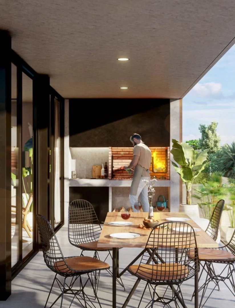 El proyecto ofrece amplias terrazas con parrillero en todas las unidades, que permiten disfrutar del entorno natural del barrio jardín.