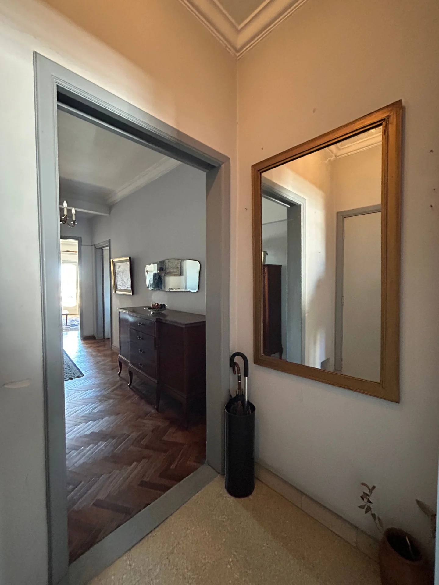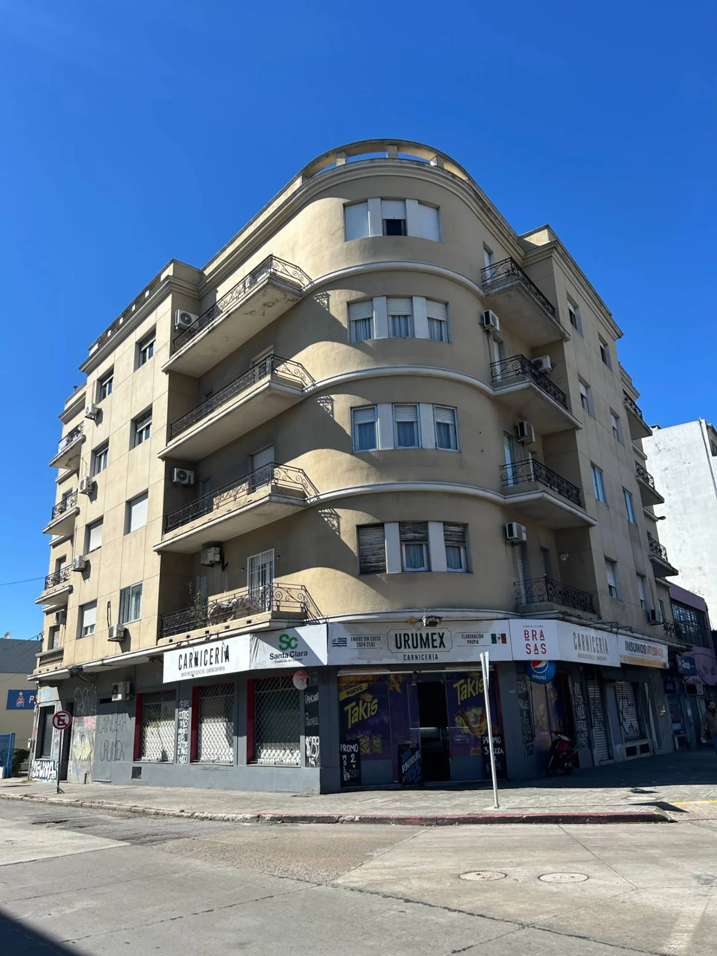 El departamento esta en el limite entre los Barrios Aguada y Cordon, en edificio en esquina sobre las calles Fernandez Crespo y Miguelete, tiene locales comerciales en planta baja y 4 pisos de apartamentos.