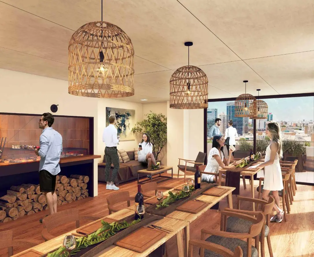 Al ingresar a esta unidad, te encuentras con un amplio espacio de living-comedor, ideal para disfrutar momentos en familia o con amigos. La cocina está integrada, lo que permite una mayor interacción con el resto de la vivienda. Este ambiente principal se extiende a una terraza al frente.