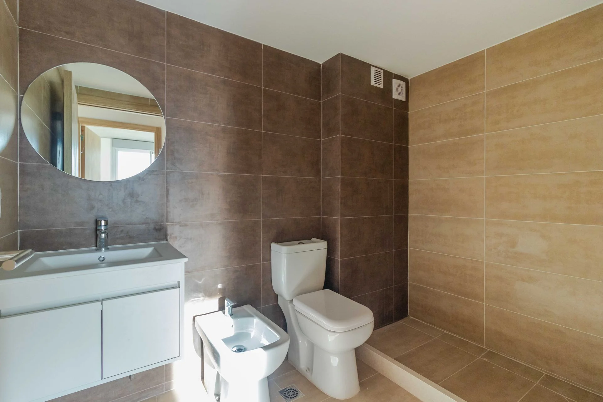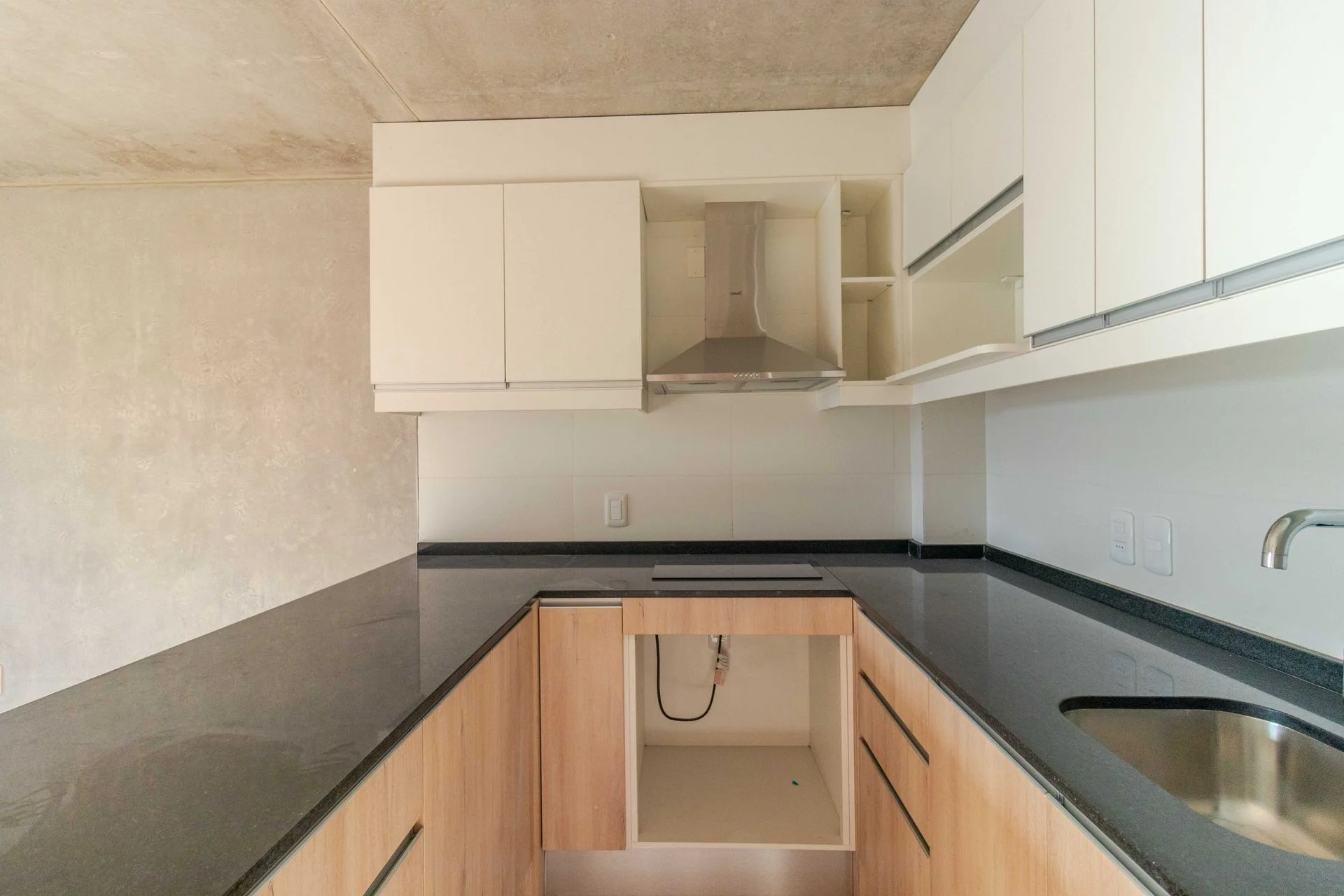 La cocina integrada se entrega equipada con anafe y campana, muebles aéreos, bajo mesada y una práctica barra para desayuno.