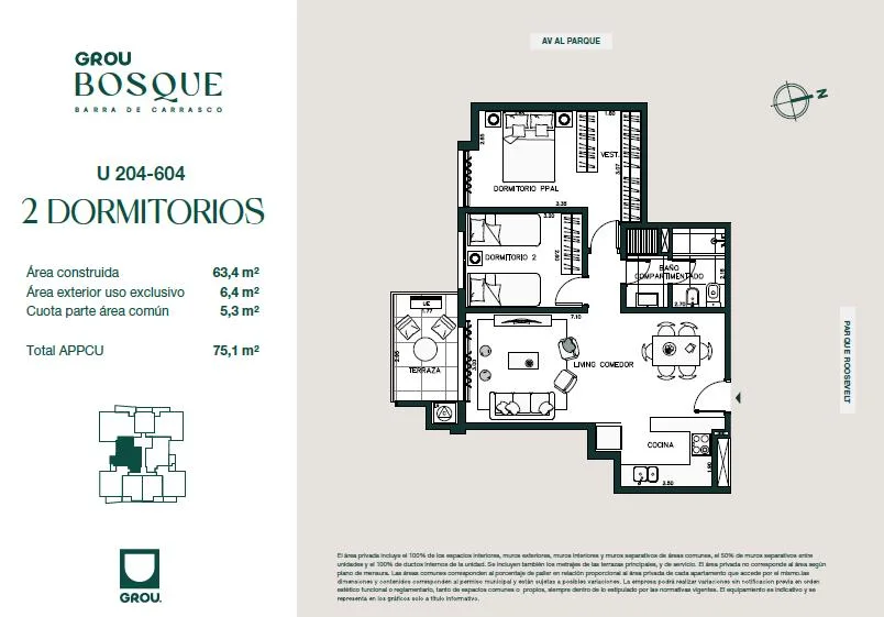 Venta apartamento 2 Dormitorios en Grou Bosque I