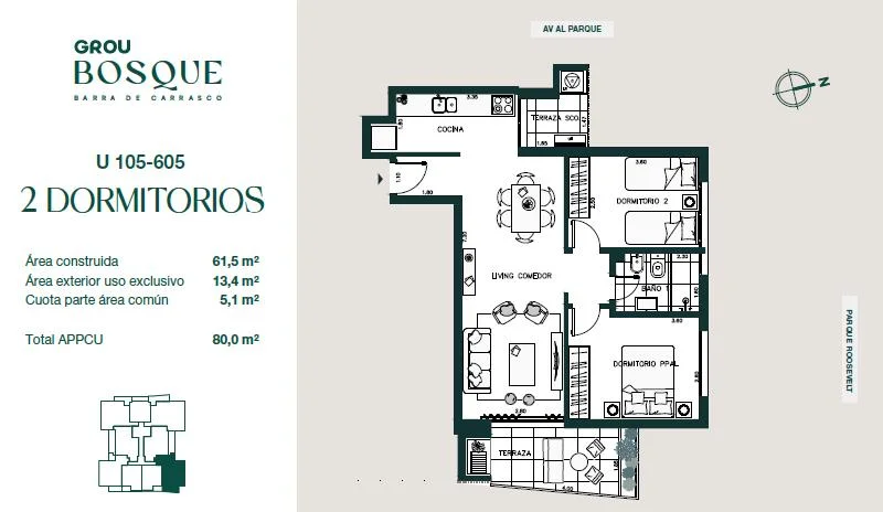 Venta apartamento 2 Dormitorios en Grou Bosque II