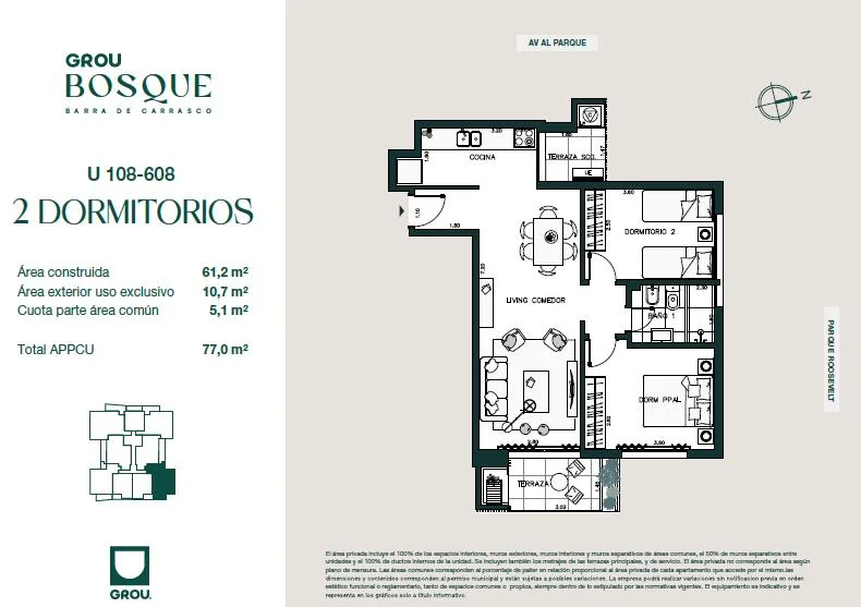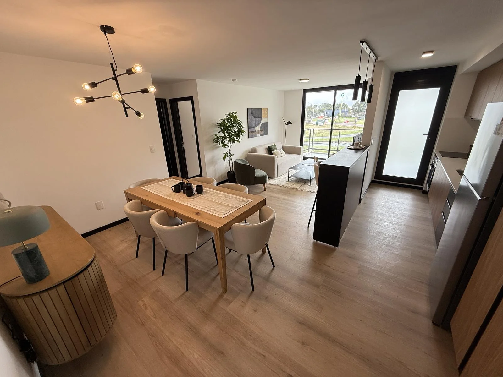 Al ingresar al apartamento, te recibe un pasillo que conecta al living comedor. Este espacio se extiende hacia una terraza con parrillero, ideal para disfrutar de momentos al aire libre y relajarse al final del día. El apartamento cuenta con cocina definida también con acceso a la terraza, aprovechando al máximo la luz natural.