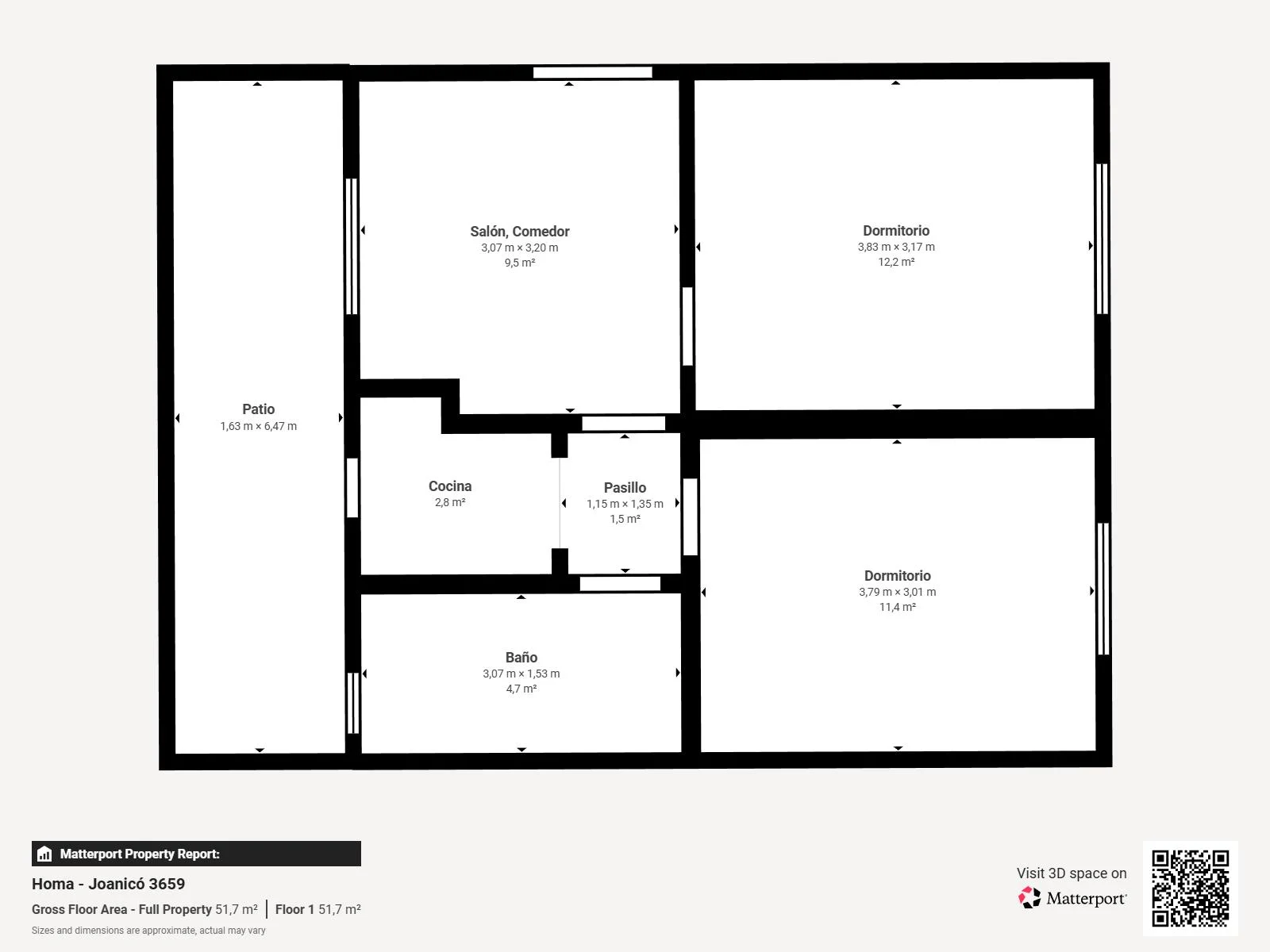 Superficie: 55 m2 (44 m2 techado y 11 m2 de patio).