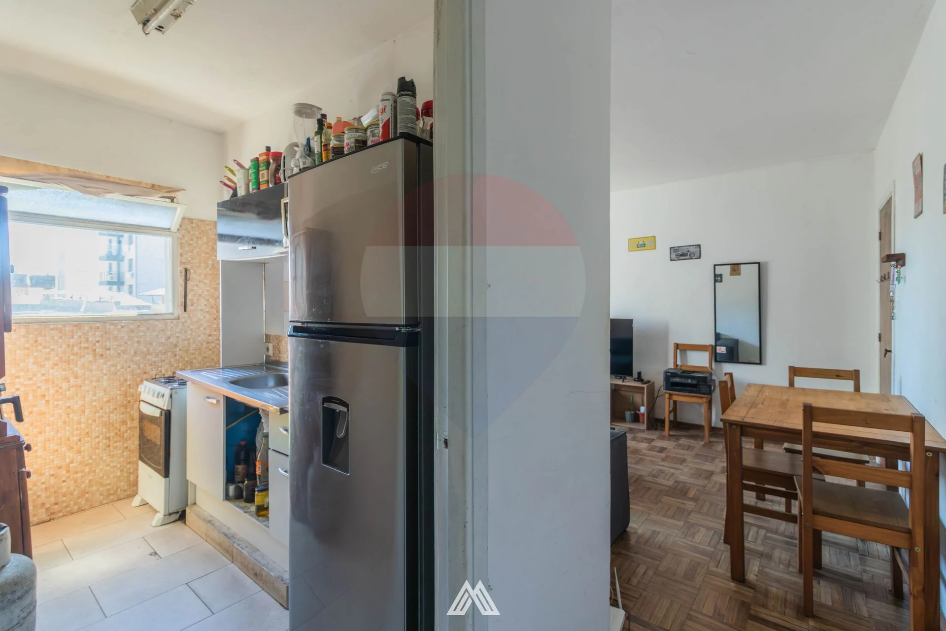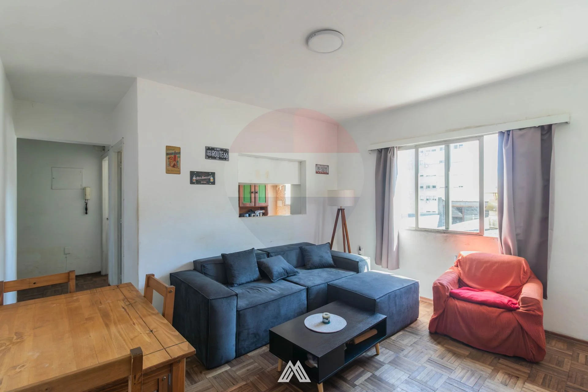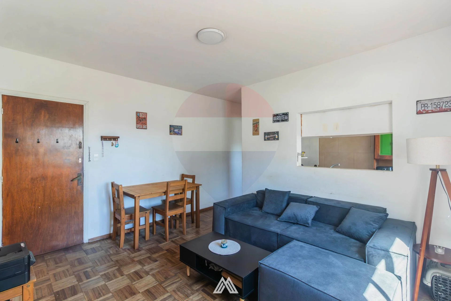El apartamento dispone de un cómodo living-comedor, con conexión a la cocina definida mediante pasaplatos, logrando una buena integración de los ambientes.