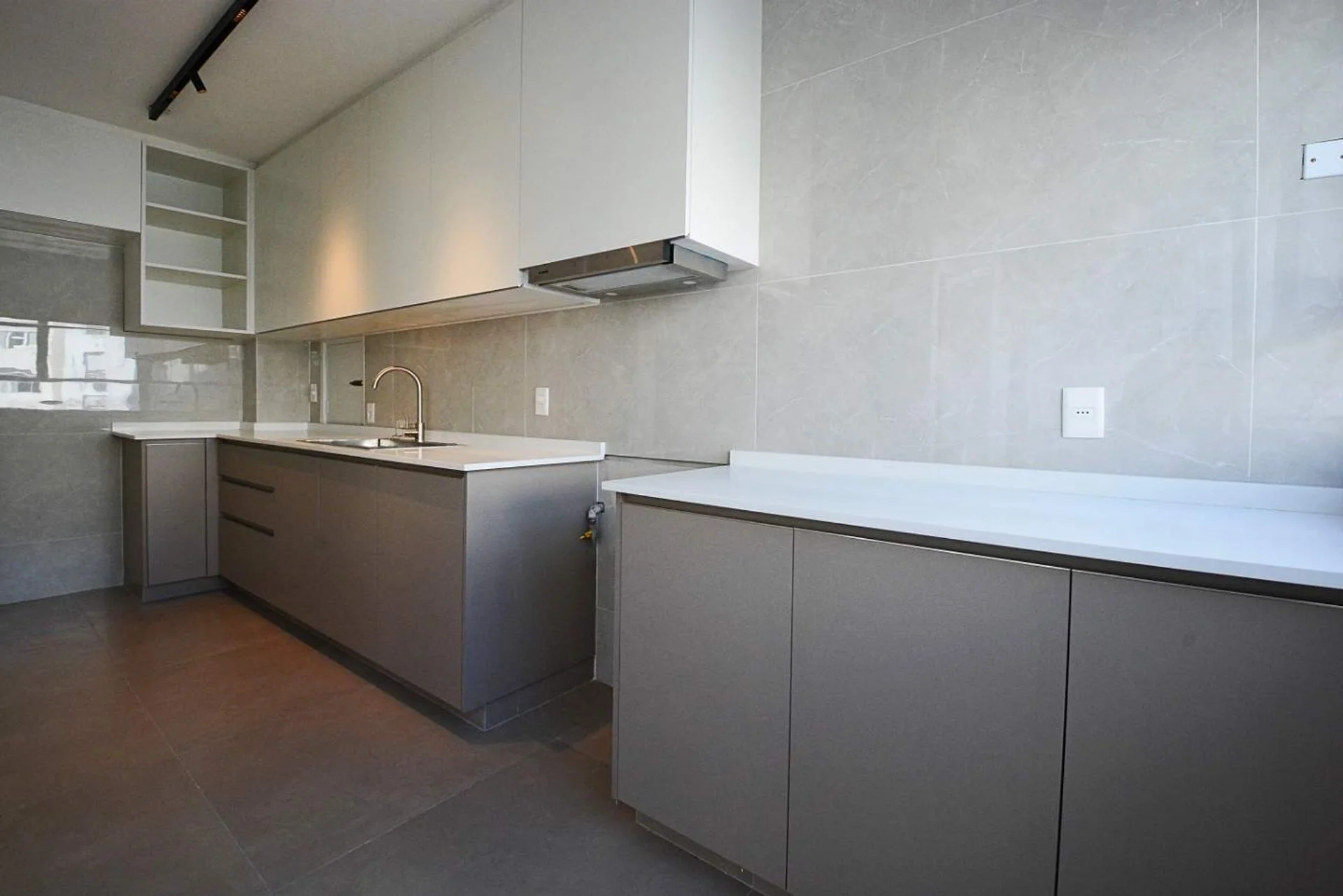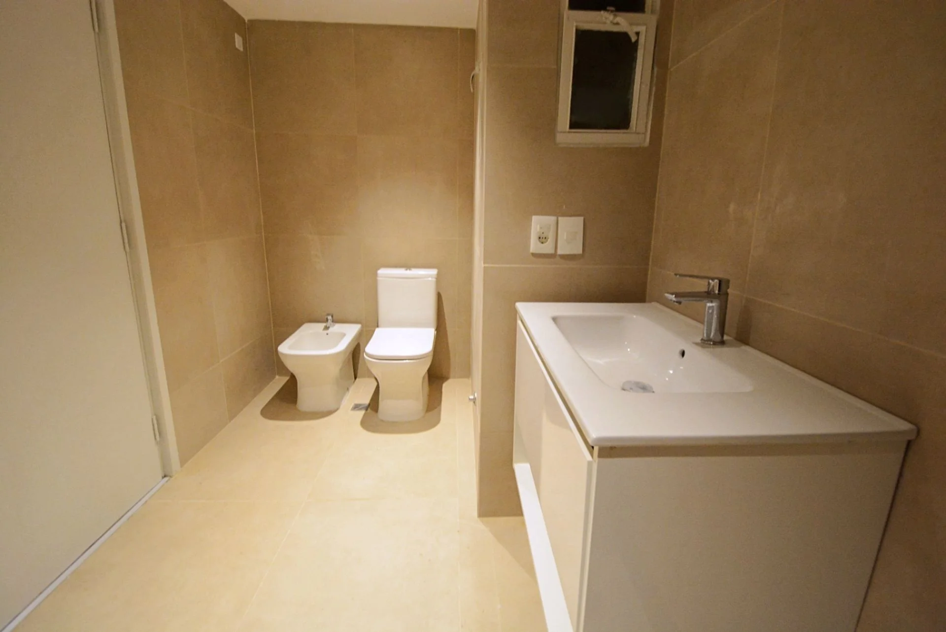 Cocina a estrenar, amplia y funcional, con salidas hacia la parte social por una puerta, y a la privada por la otra. Mesadas de cuarzo tipo silestone, mueblas bajo mesada y aéreos con puertas y cajones con mecanismo de cierre suave. Extractor instalado y gas por cañería. Integrados a la cocina están el comedor diario y la terraza lavadero cerrada, con vista al contrafrente despejado. Baño social con ducha en el mismo ambiente.