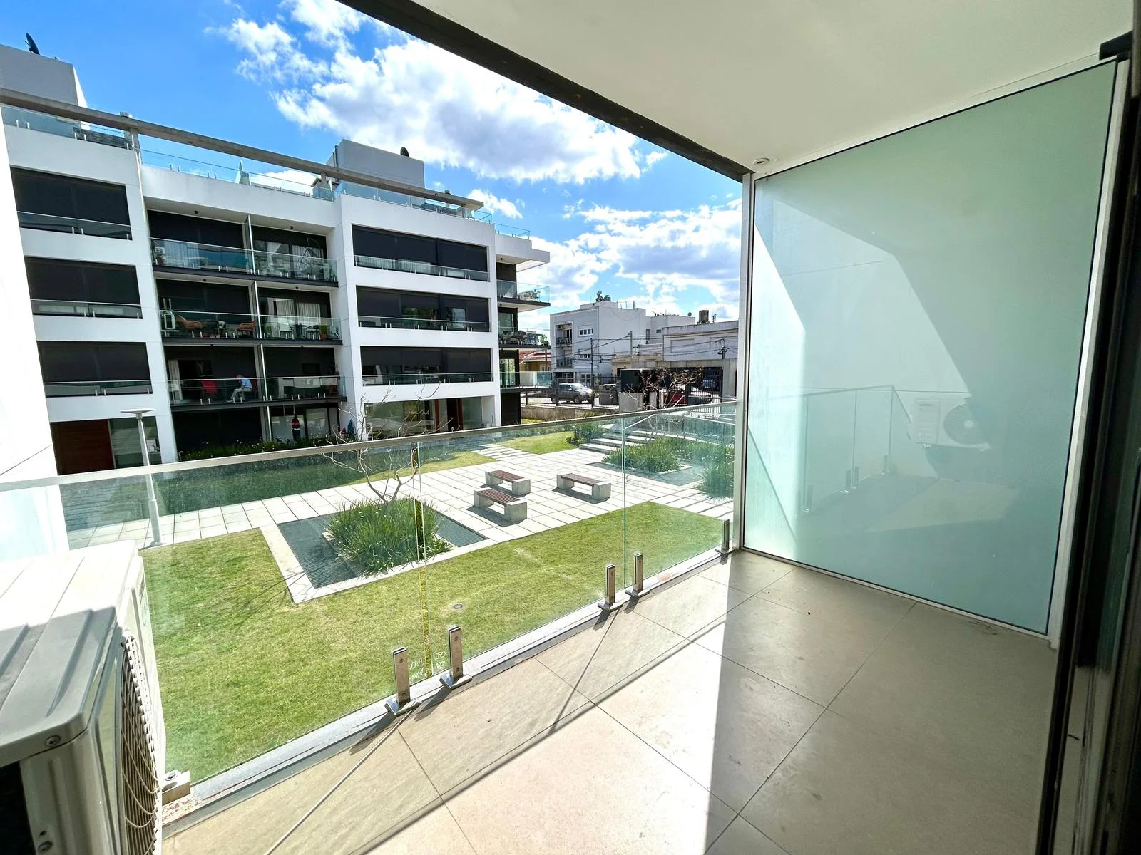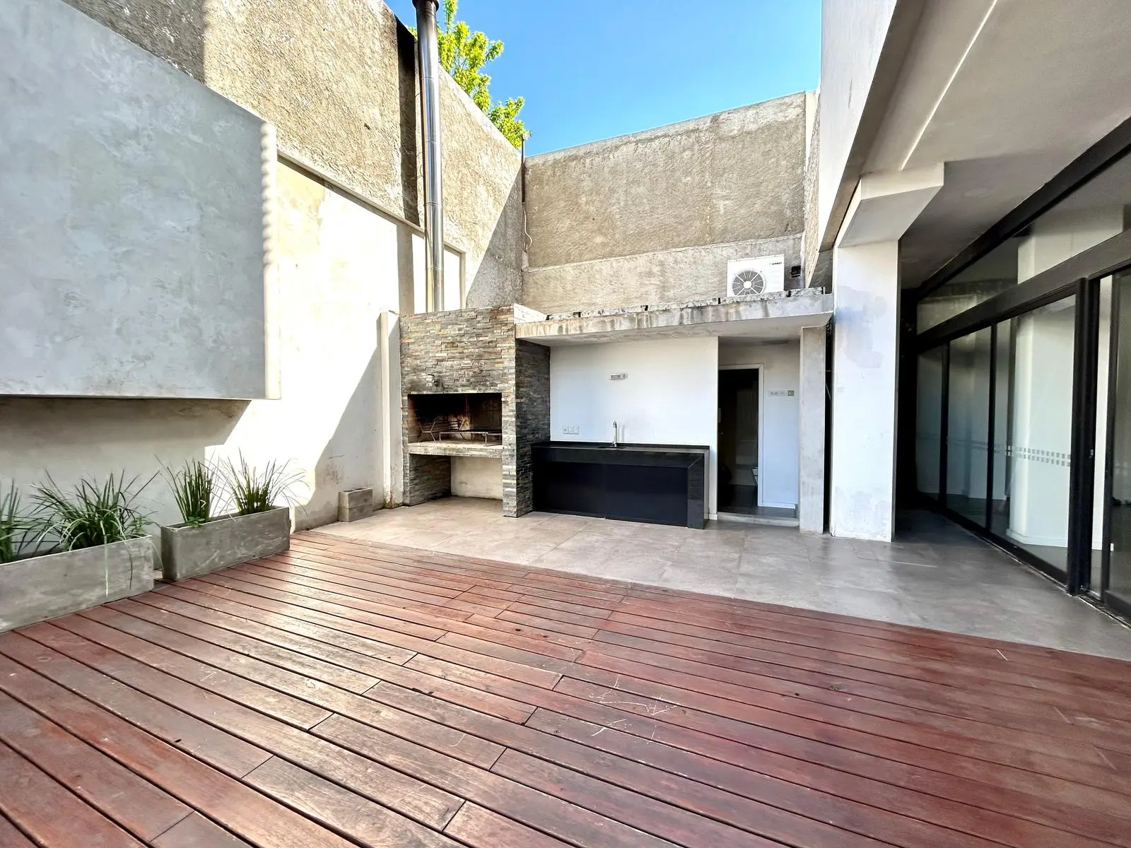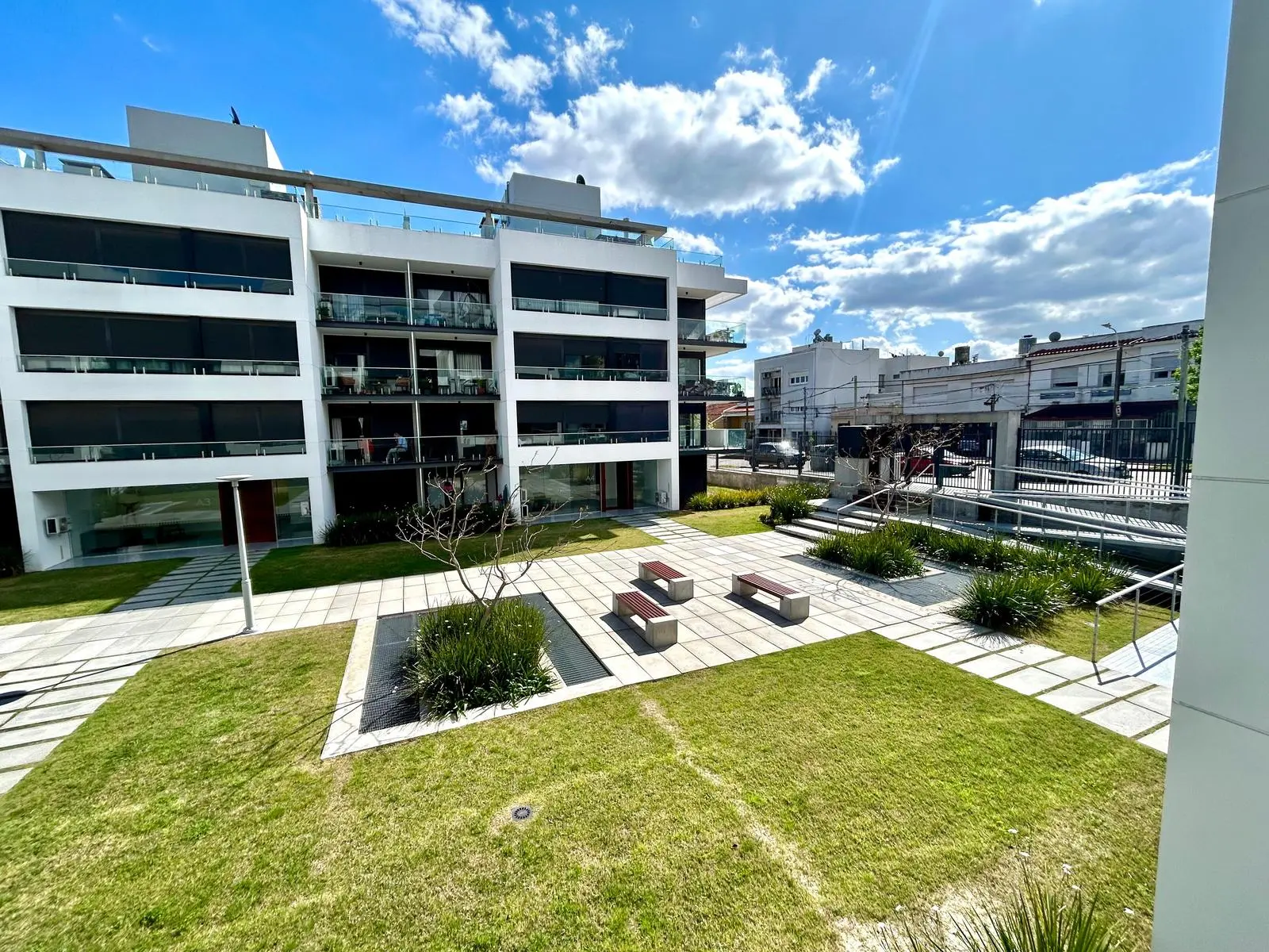 Amplio living comedor y terraza hacia el Parque del Jacarandá.