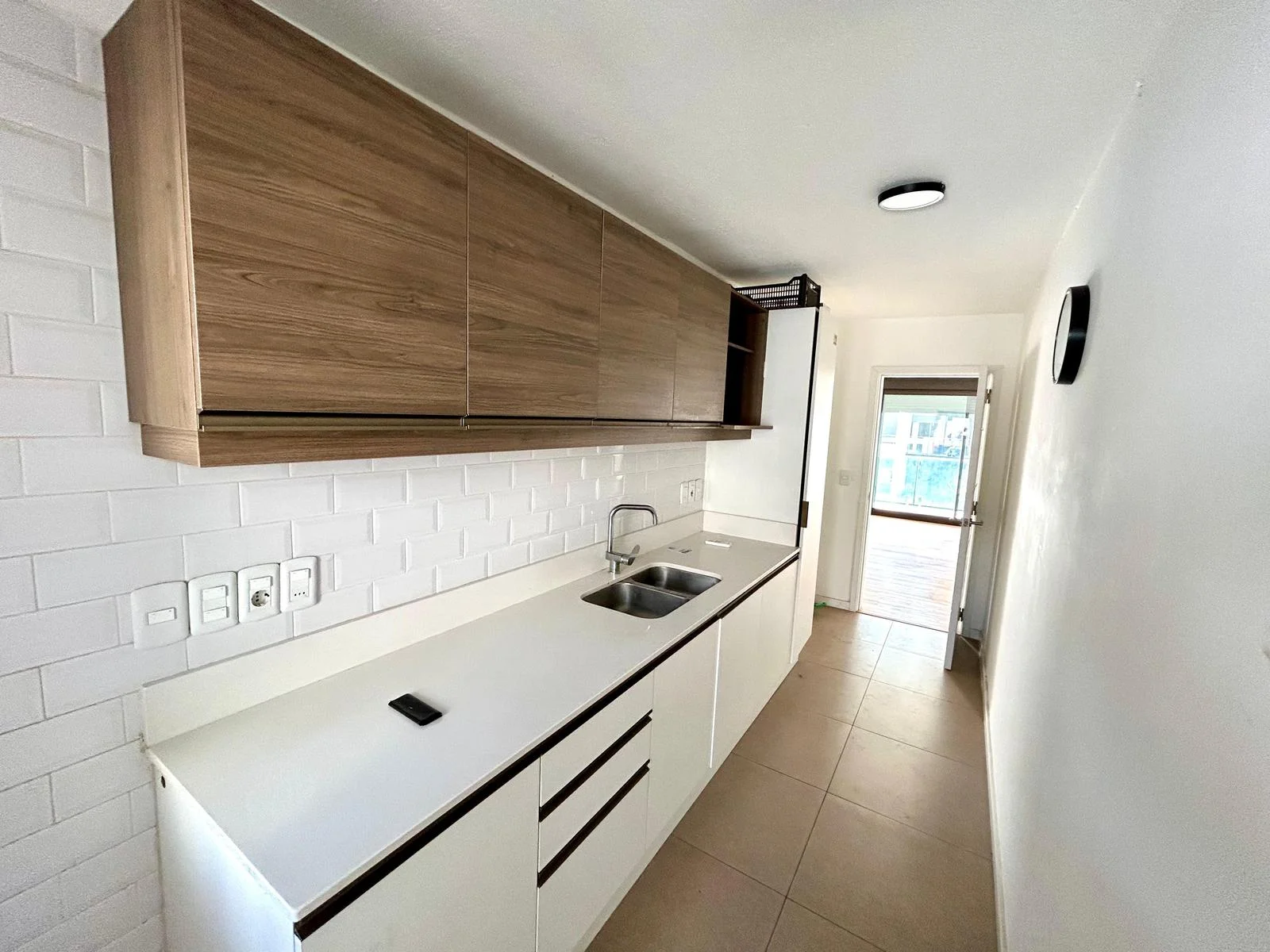 Cocina definida de grandes dimensiones con muebles aéreos y bajo mesada. Terraza lavadero.