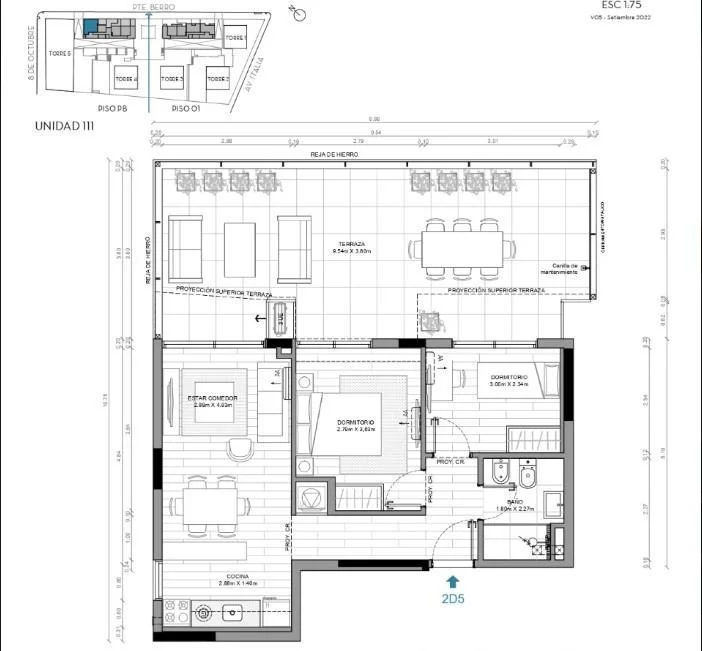 La unidad cuenta con living comedor con salida a terraza, cocina integrada equipada con anafe, horno eléctrico y aire acondicionado.