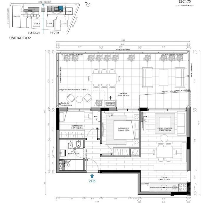 La unidad cuenta con living comedor con salida a terraza, cocina integrada equipada con anafe, horno eléctrico y aire acondicionado.