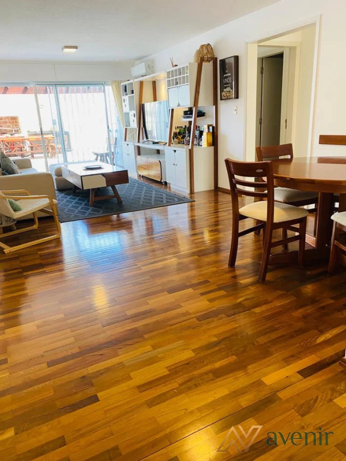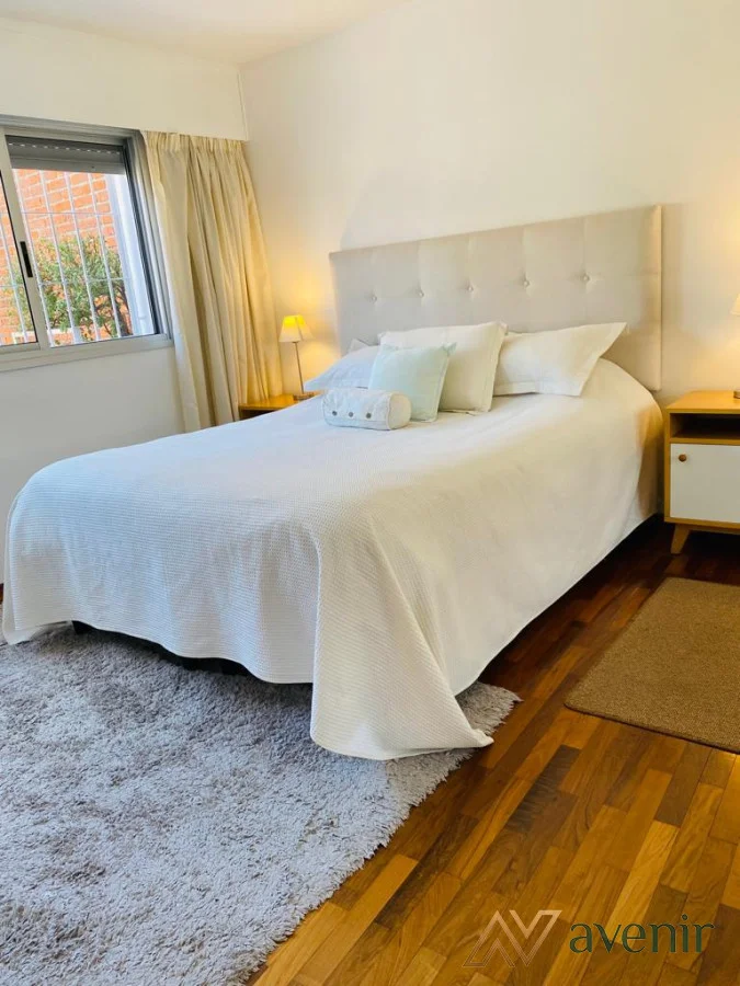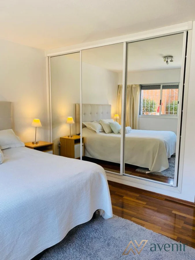 El apartamento cuenta con 85m2 interiores más el patio antes mencionado y se distribuye de la siguiente manera: 2 dormitorios con placares y ventanales grandes que permiten la iluminación y ventilación continua, 2 baños completos, cocina espaciosa con luz natural que contiene placares aéreos y bajo mesada, la cual se encuentra conectada a una terraza lavadero.