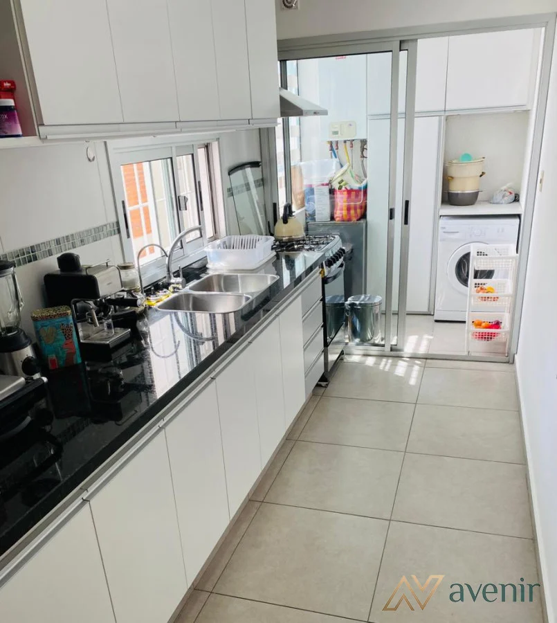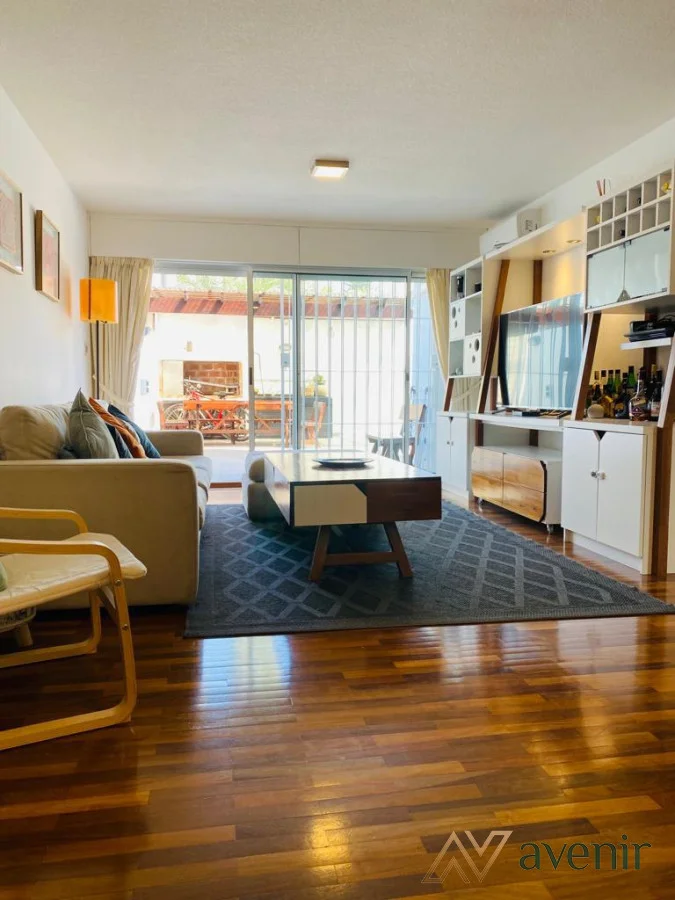 Al entrar a la propiedad, hall de ingreso conectado a un living comedor amplio y luminoso, con pisos de lapacho plastificados y un gran ventanal con salida a un patio espectacular despejado al sol, con parrillero techado para disfrutar en todo momento con un total de 35 m2. Persianas eléctricas.