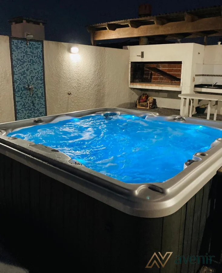 Parrillero en último piso con solárium y jacuzzi, todo lo cual permite disfrutar de una vista destejada.