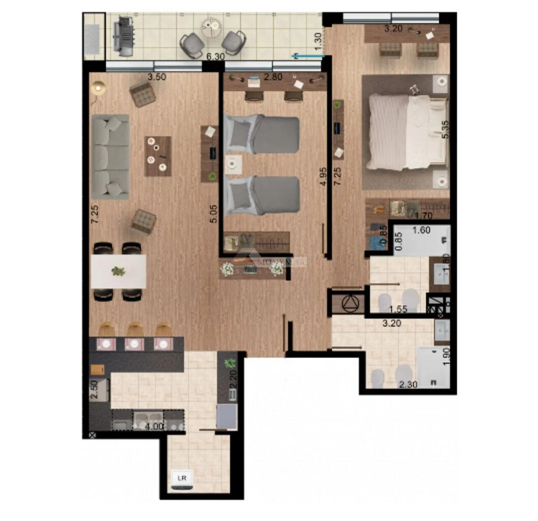1102) 94,58m2 area interior + cuota pallier 14,43 + 8,39m2 area exterior = 117,70m2 Totales.
