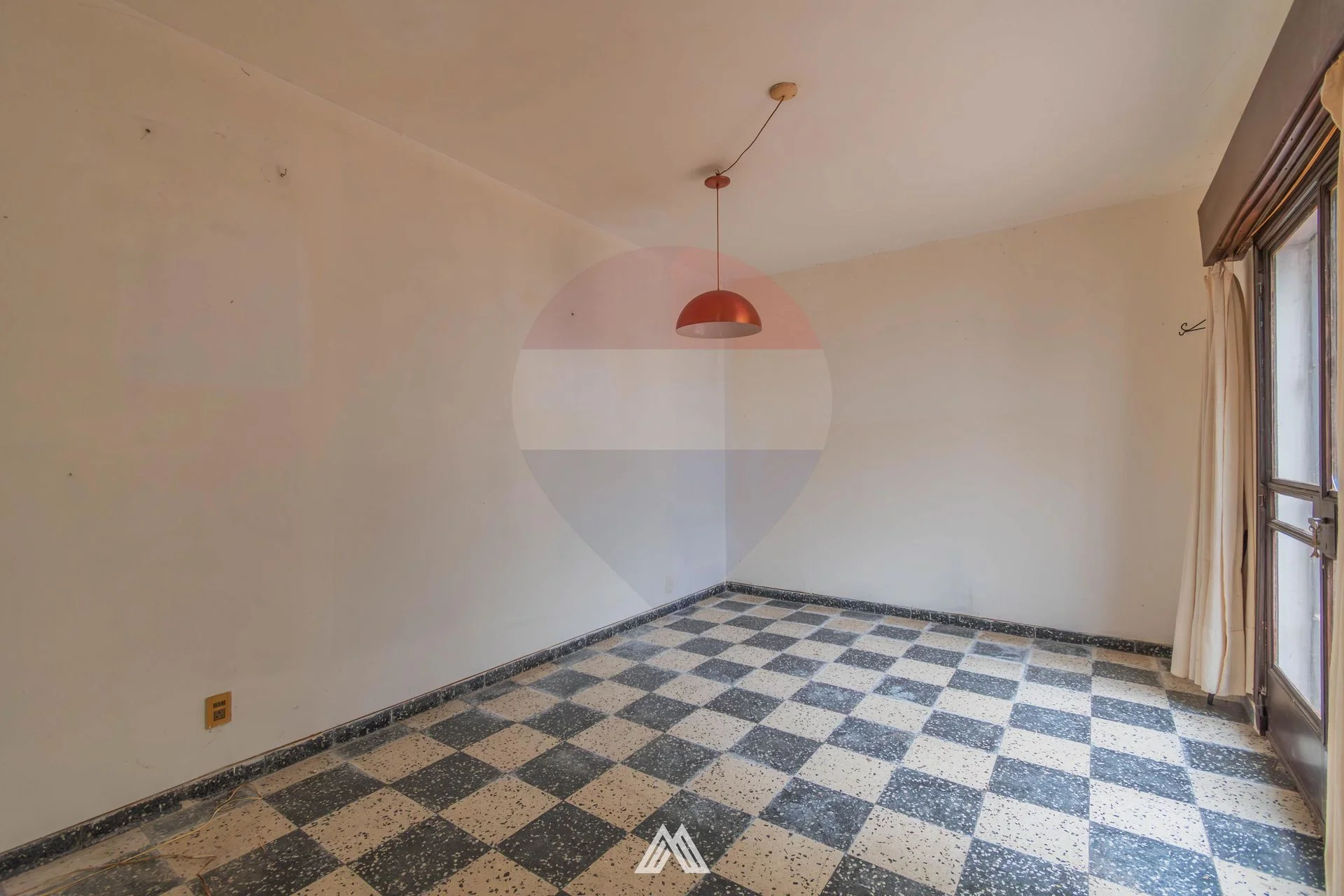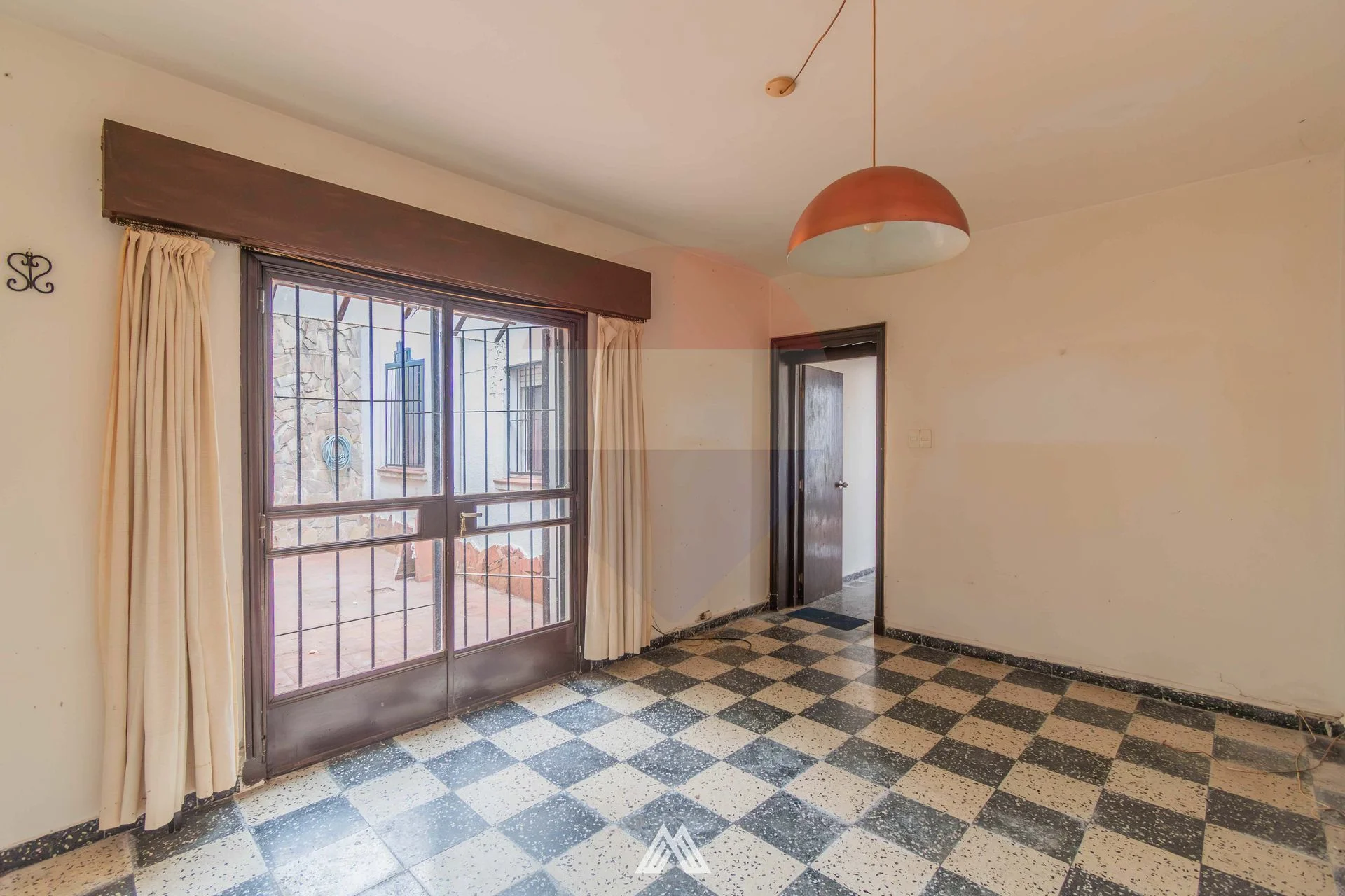 Living comedor espacioso con pisos de monolítico ajedrezado
