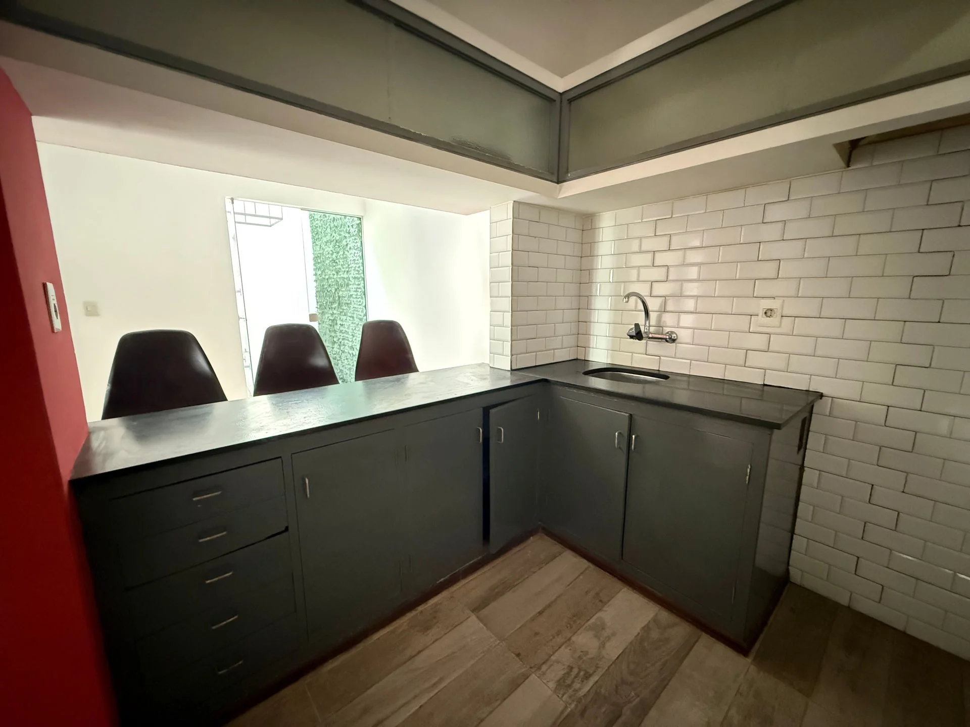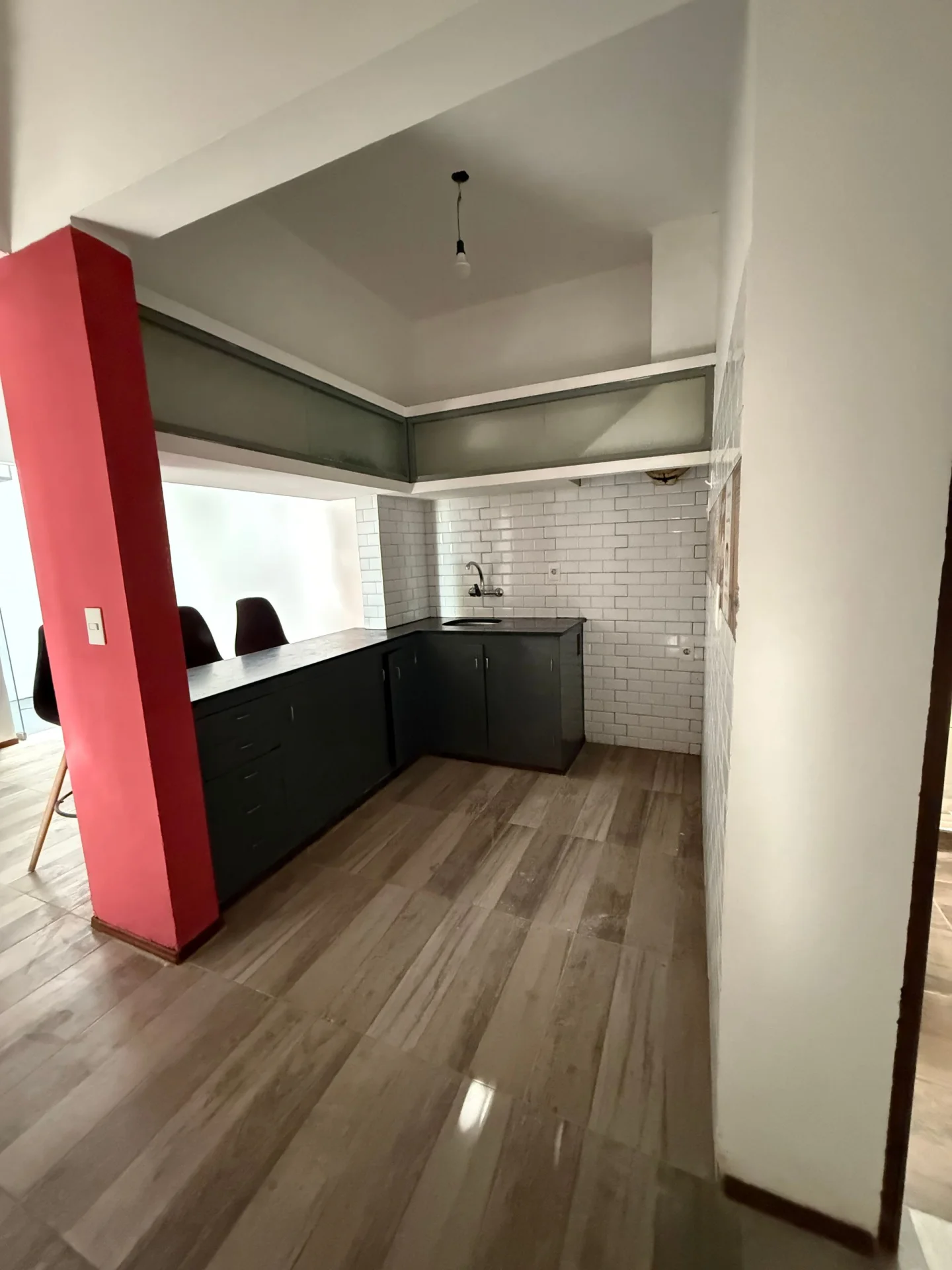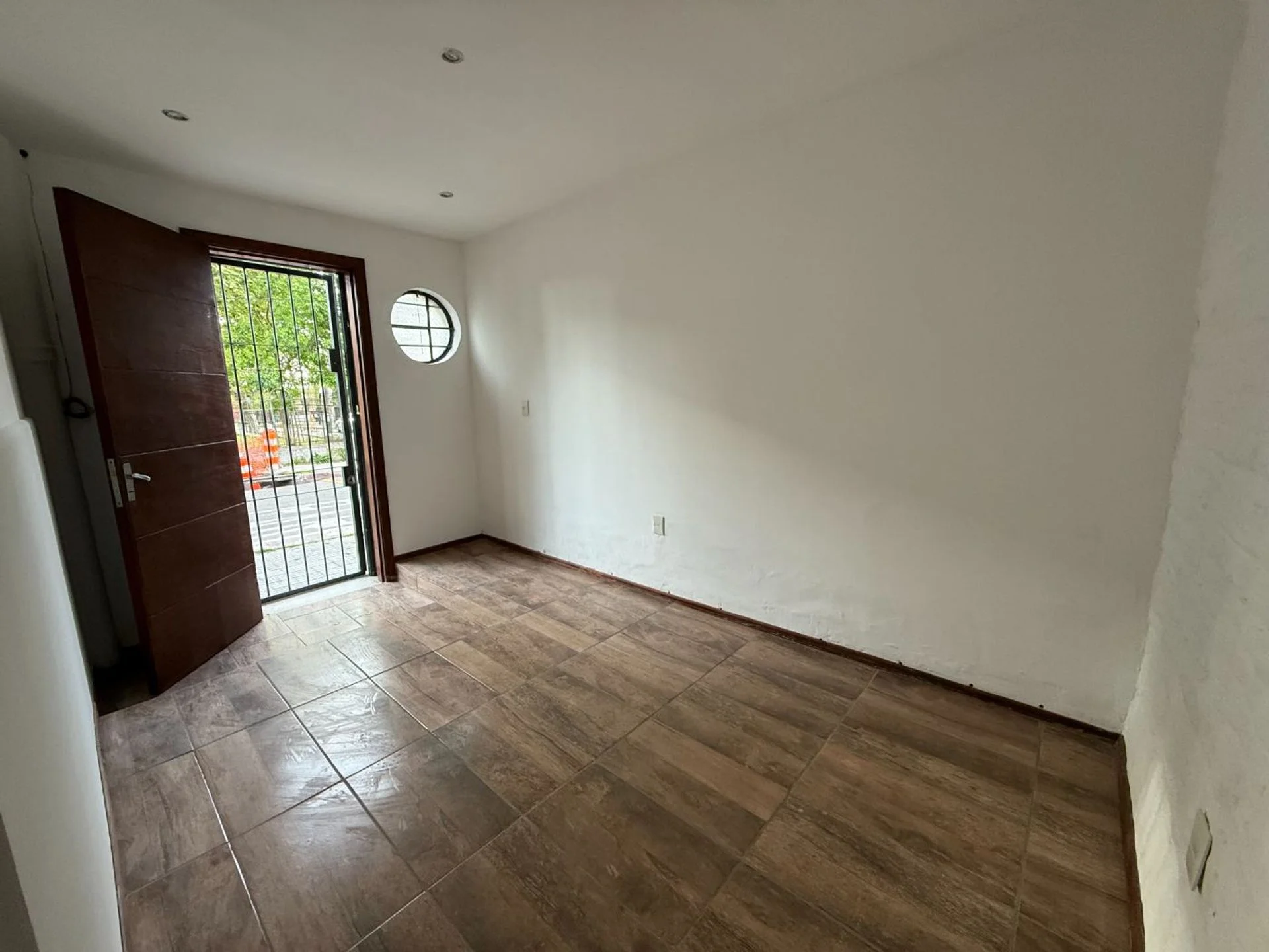 Es un apartamento planta baja tipo casa PH en una sola planta. Al ingresar tenemos el living seguido del comedor y la cocina abierta con barra desayunadora. Tenemos un pequeño patio donde colgar la ropa.