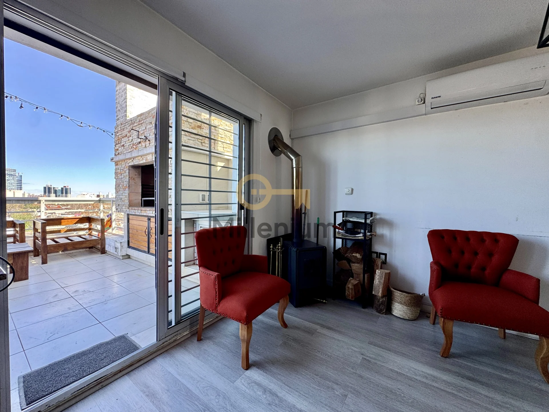 • Aire acondicionado en living y dormitorios.
