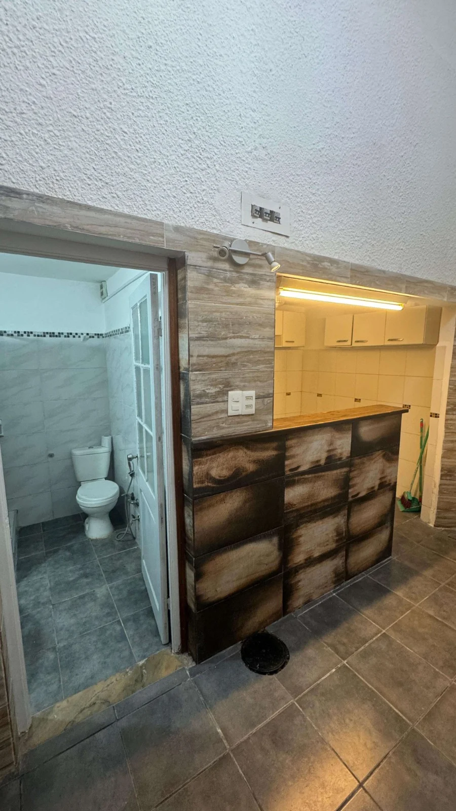 Cocina definida con aéreo, bajo mesada, desayunador, y pequeño hall que separa cocina, living, uno de los dormitorio y baño.