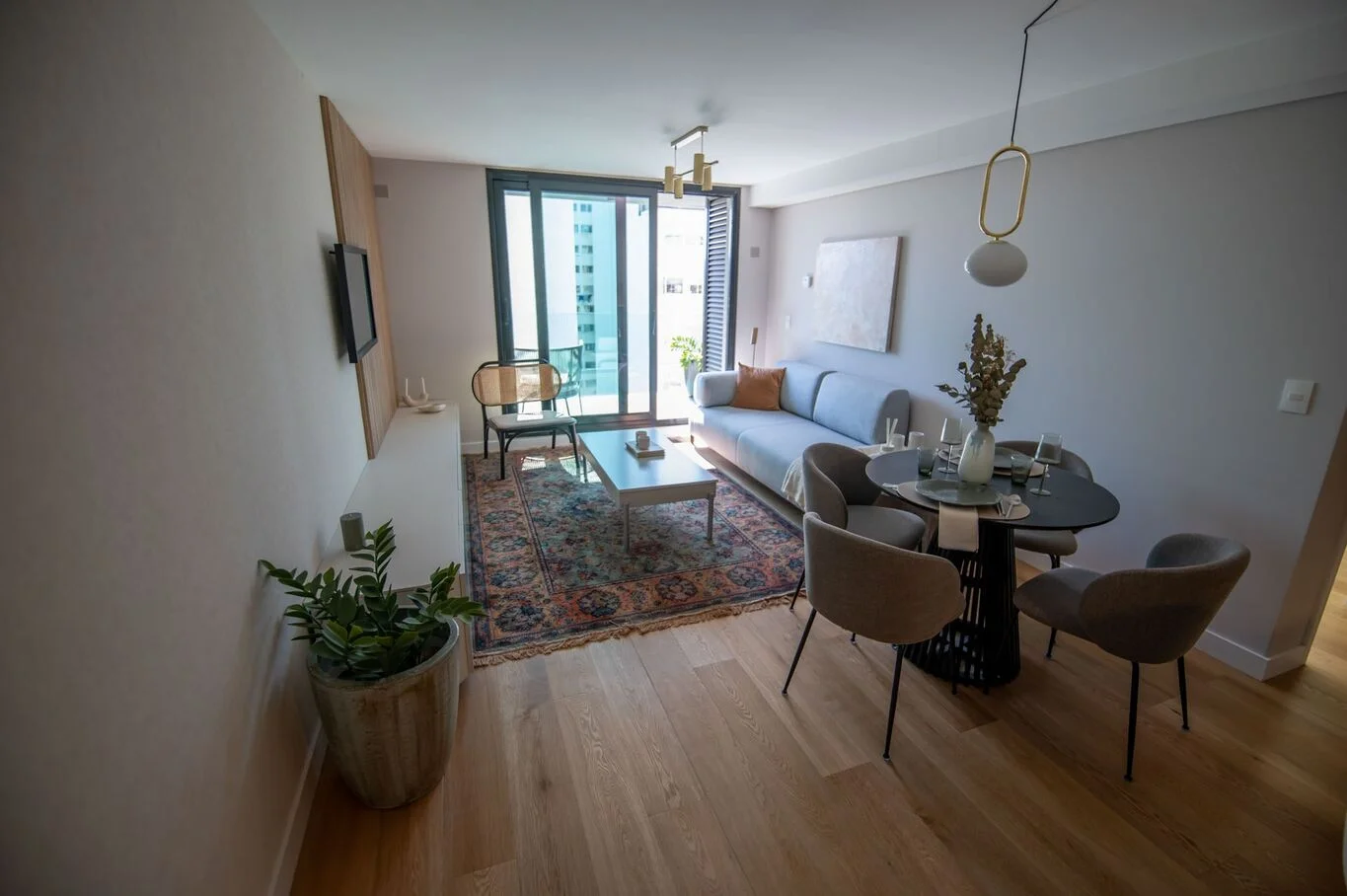 Amplio living comedor con salida a terraza