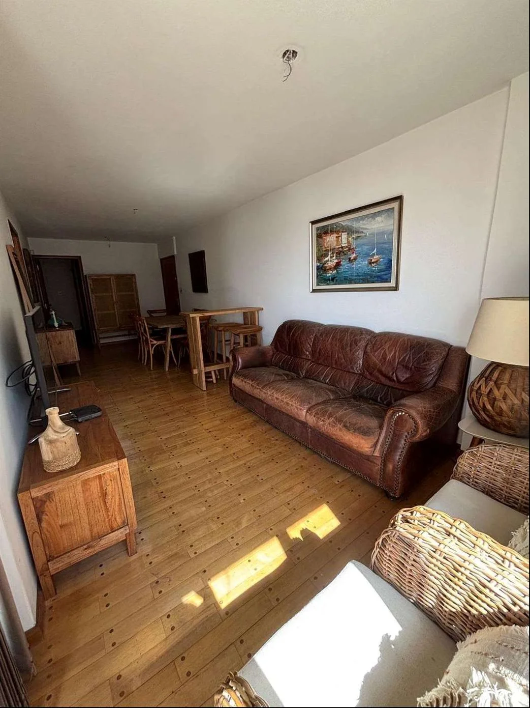 Living comedor con salida a terraza y vista al mar. Cocina definida al frente con muy buenos placares. Dos dormitorios con placares (uno en suite). Otro baño completo. Vigilancia 24 horas y losa radiante central. Gastos comunes $ 16.500
