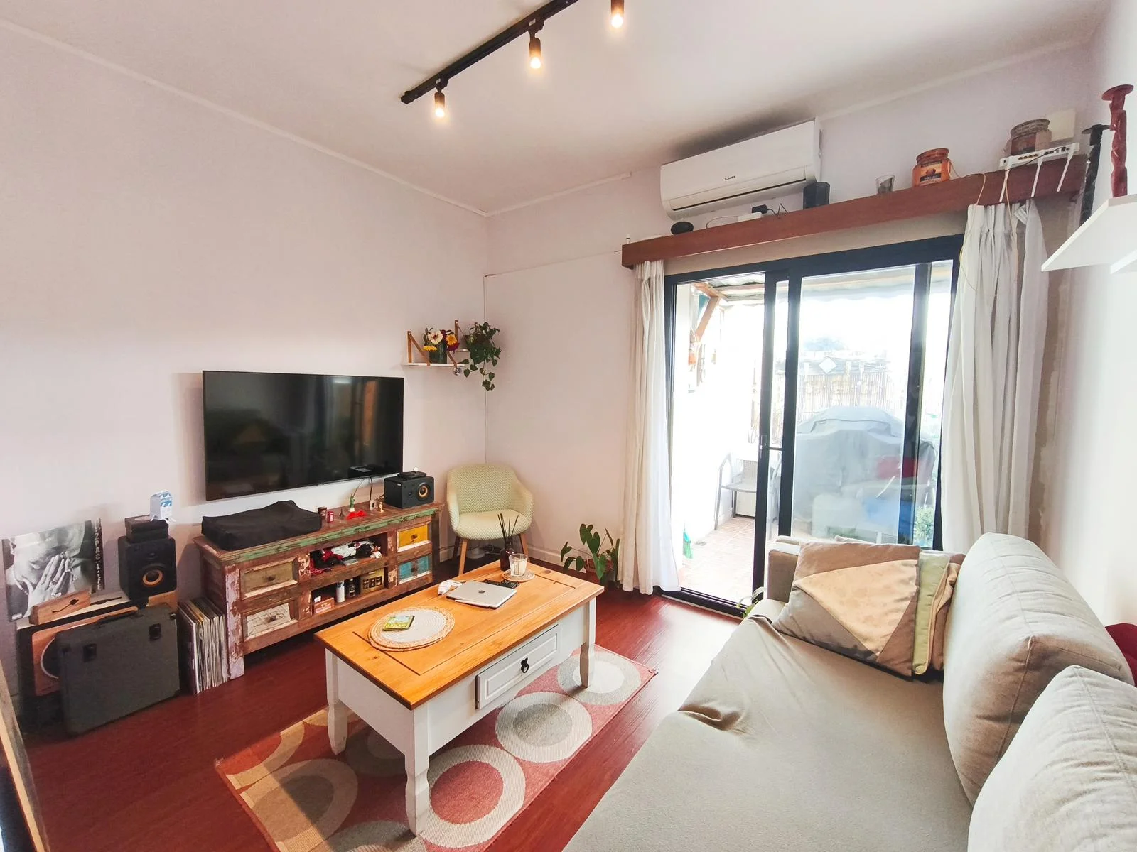 Living comedor con terraza muy disfrutable. Sol en la tarde! Piso flotante simil madera.