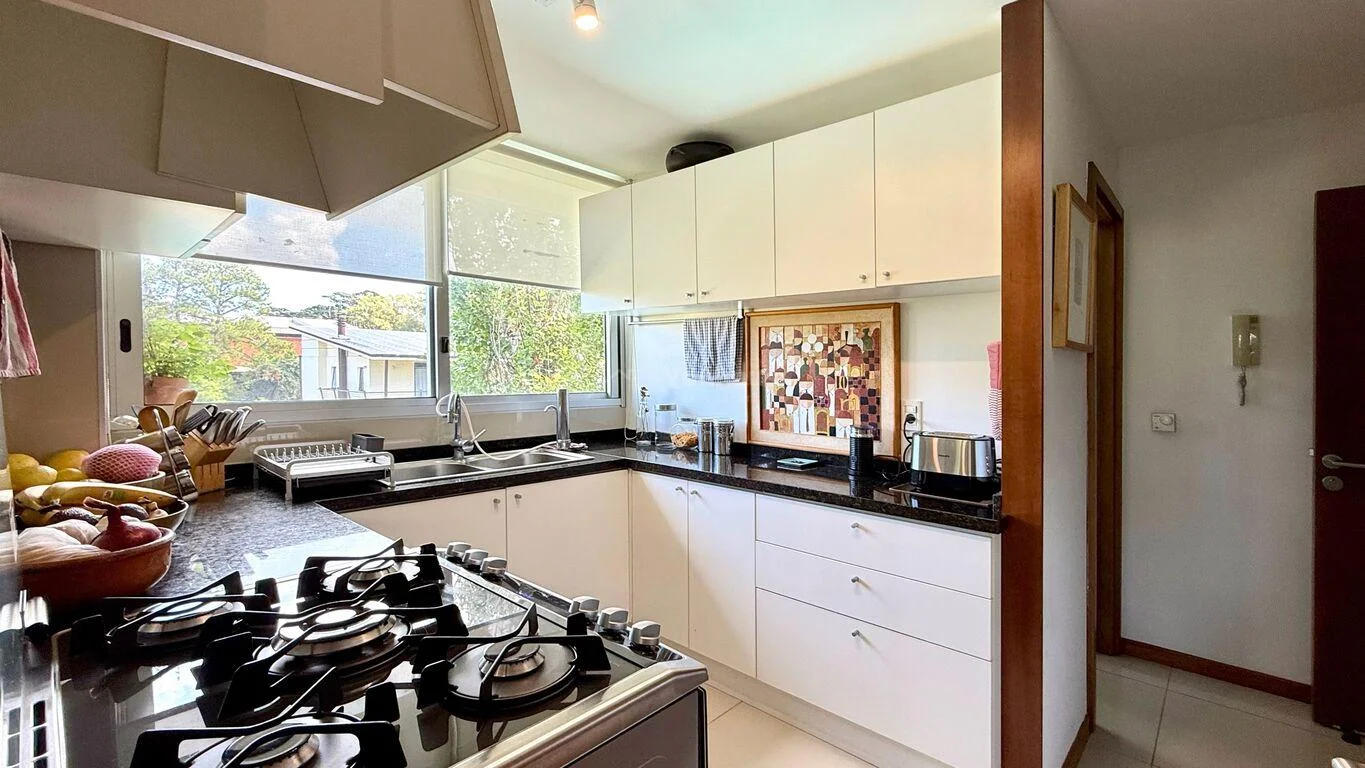 Cocina definida, con acceso a un dormitorio de servicio, un lavadero y un baño completo de servicio.