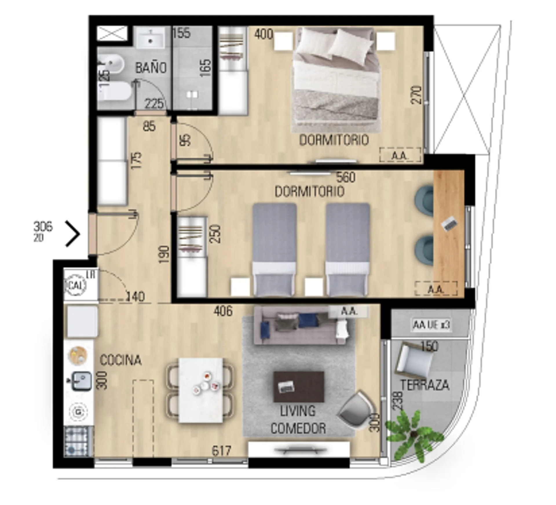 Apartamento unidad 306 en el tercer piso al frente por calle Cuaró, orientación Este.