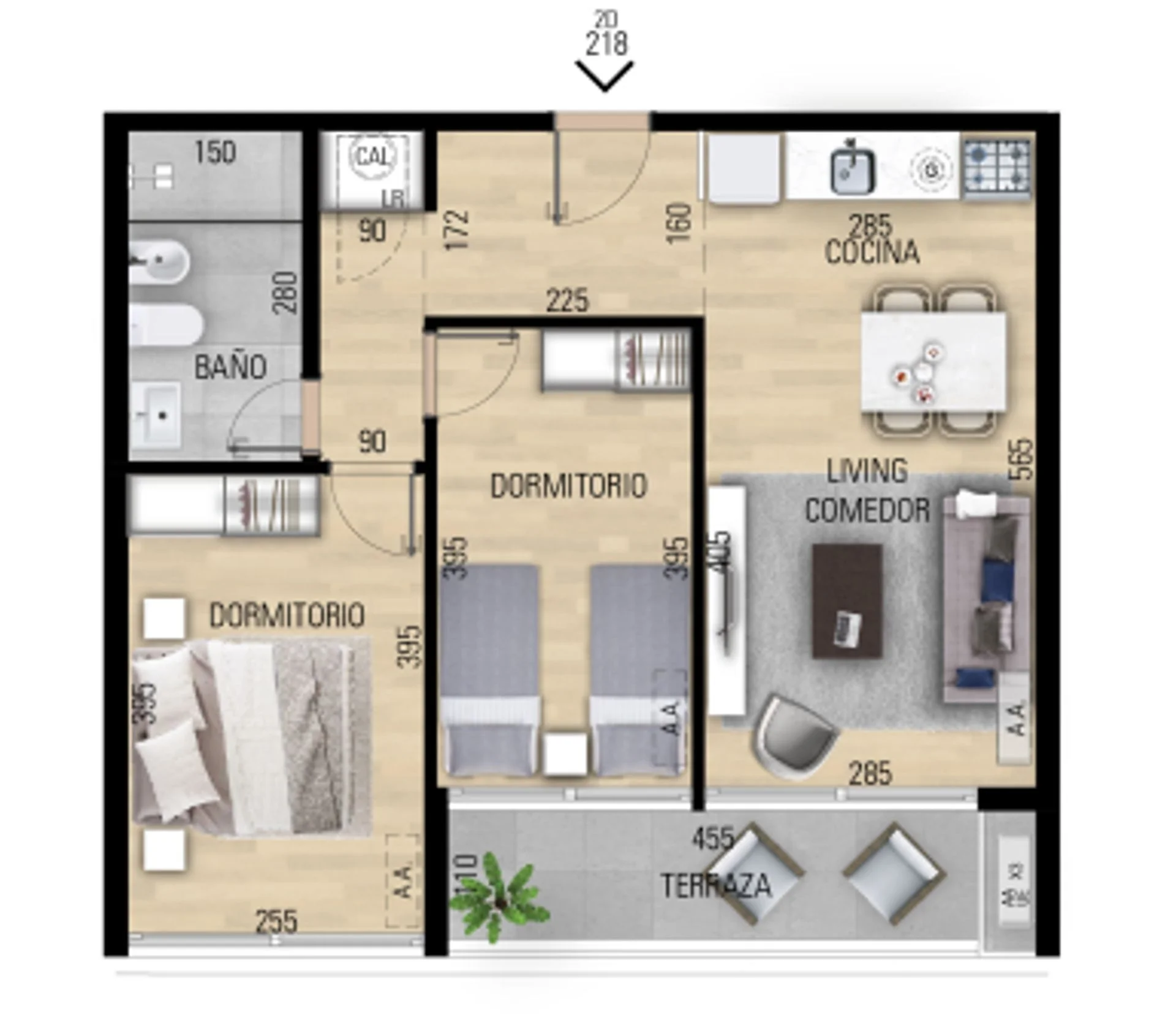 Apartamento unidad 218 en el segundo piso con orientacion Sur.