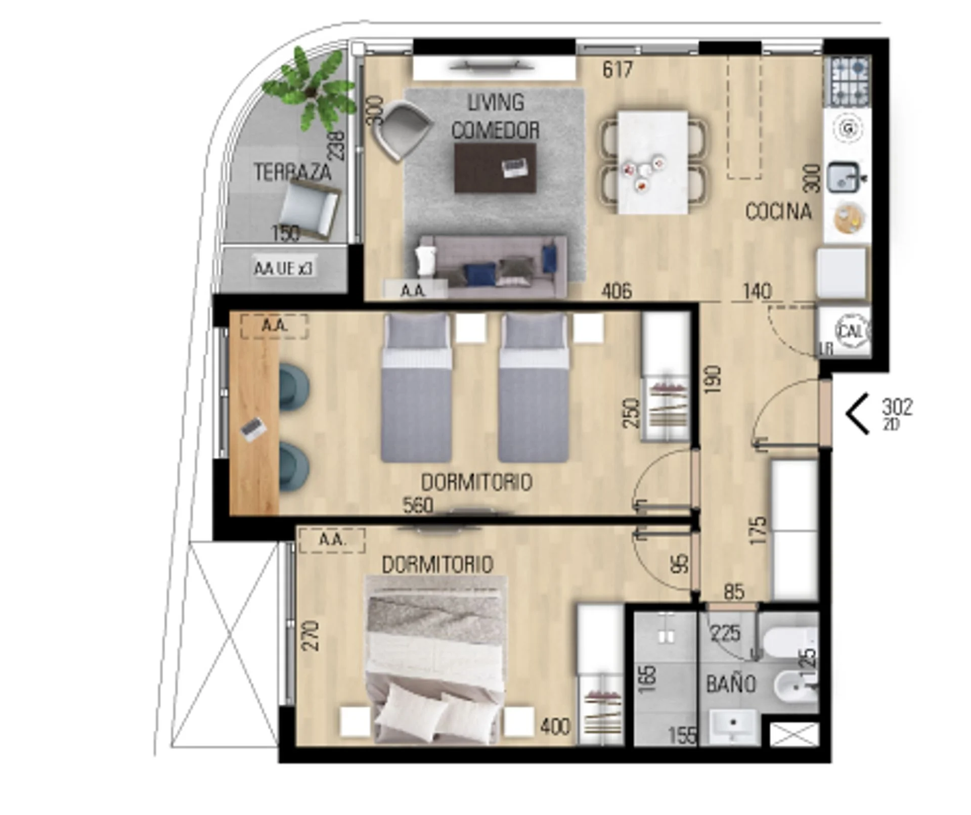 Apartamento unidad 402 en el cuarto piso con orientacion Oeste.