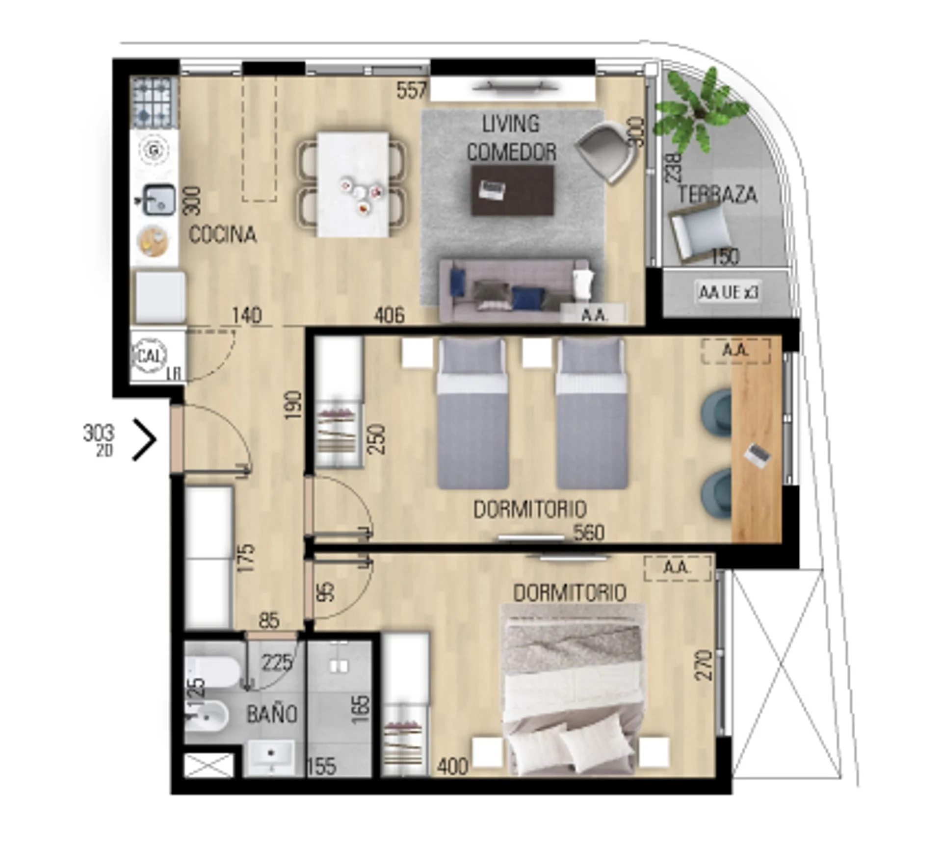 Apartamento unidad 303 en el tercer piso al frente por calle Cuaró, orientación Este.