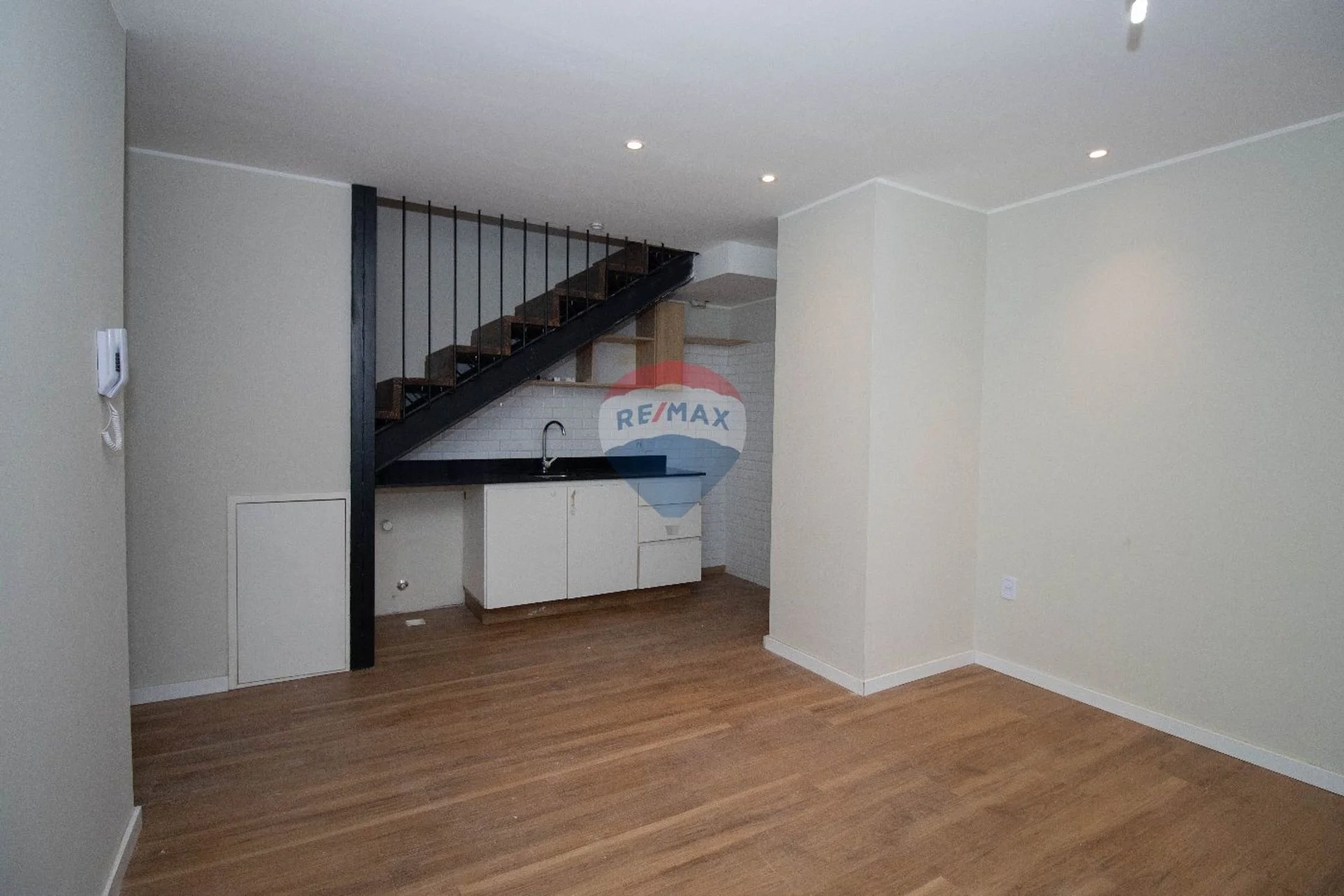 La propiedad ofrece una distribución funcional de 53 m² cubiertos y 13 m² semicubiertos, con dos dormitorios en planta superior. El dormitorio principal cuenta con salida a balcón y ambos espacios incluyen persianas. En planta baja se encuentra un living con cocina integrada y barra, junto a un baño completo.