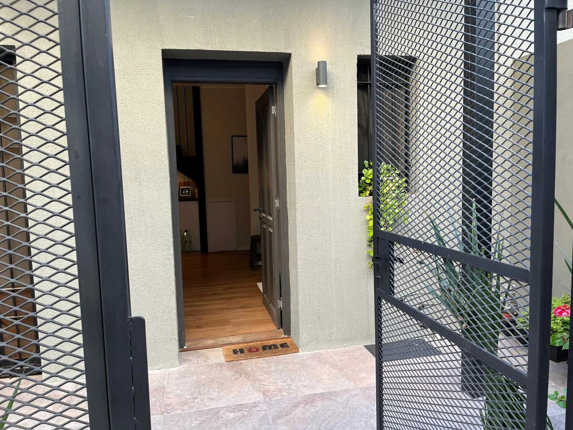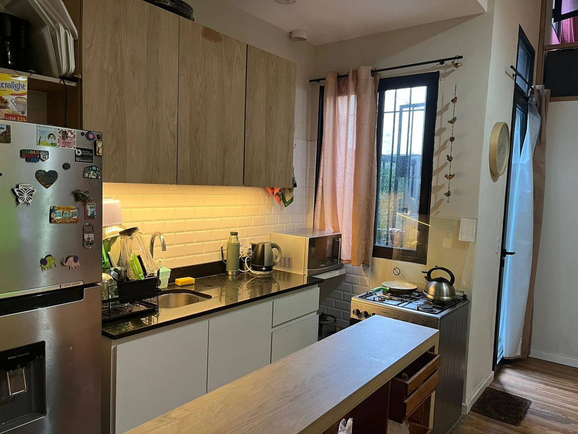 El acceso se realiza a través de un patio frontal que conduce al interior del departamento. El living integrado con cocina genera un ambiente luminoso y amplio, con excelente ventilación natural. El dormitorio principal dispone de vestidor y salida independiente.