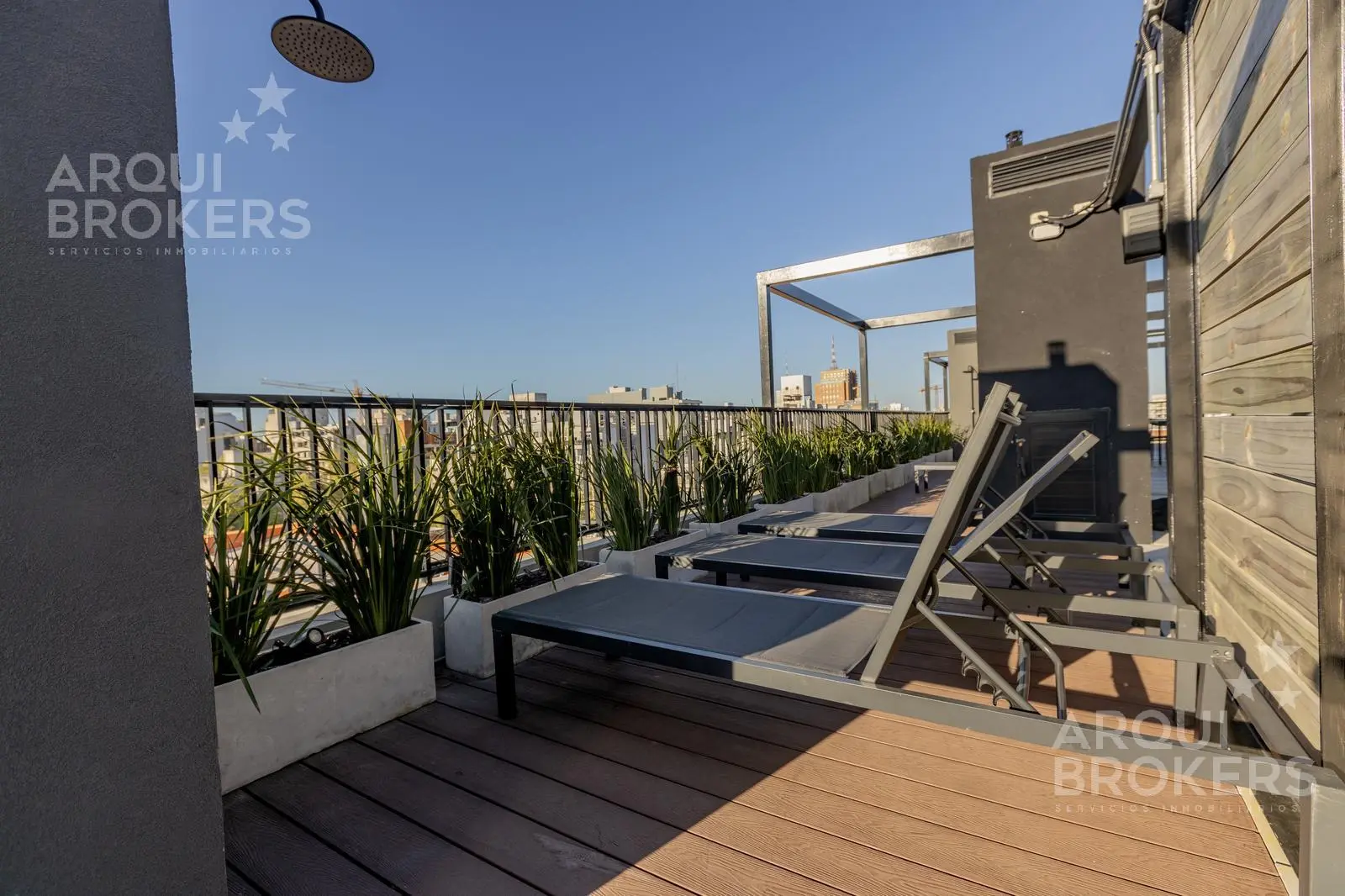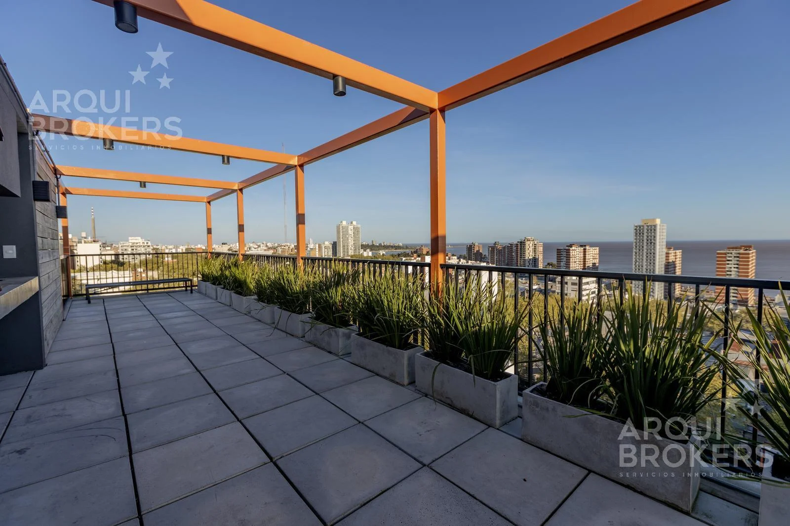 El edificio cuenta con un hall de acceso flex que integra: locales comerciales, salas de reunión, gimnasio y patio interno. Y Rooftop con excelentes vistas a la Ciudad en la Torre Norte, a la Rambla y el mar en la Torre Sur.