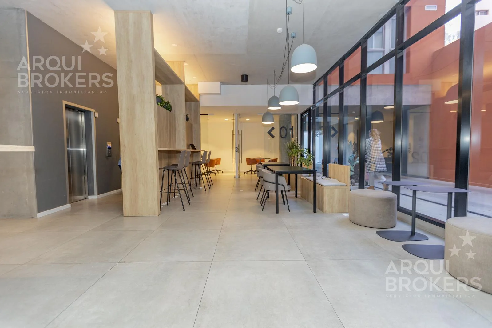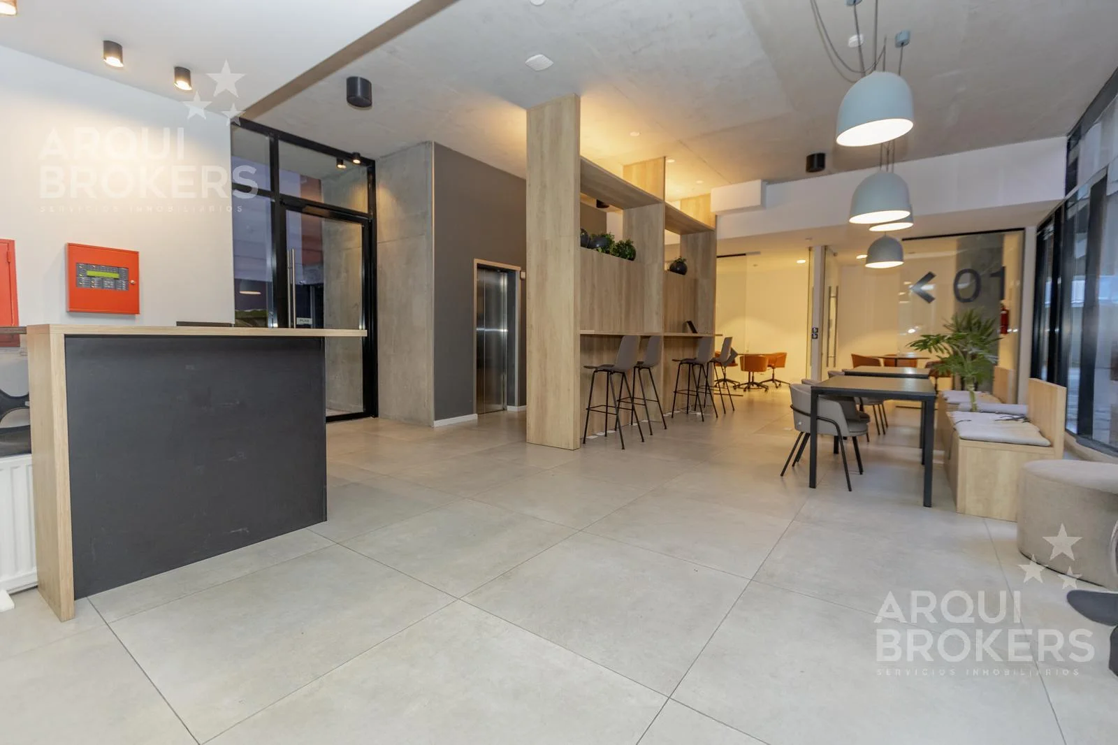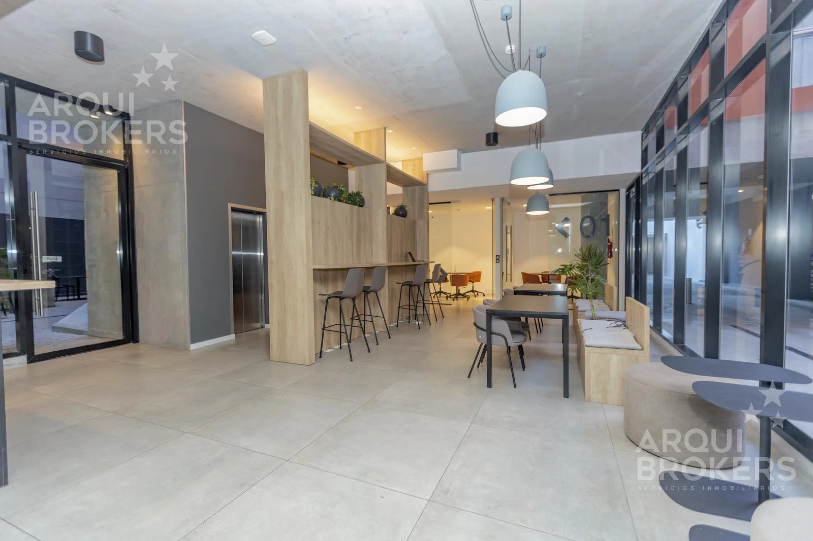 Espacio de coliving: Amplio salón de usos múltiples con baño y kitchenette, con kit de control de iluminación de los espacios, audio y video ideal para reuniones o eventos.