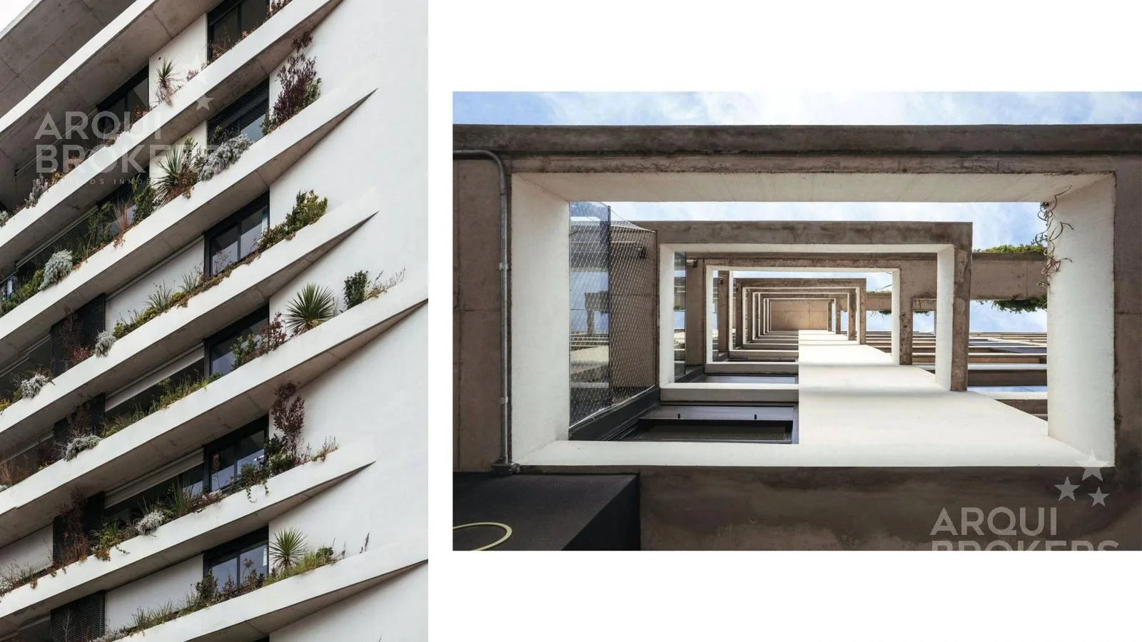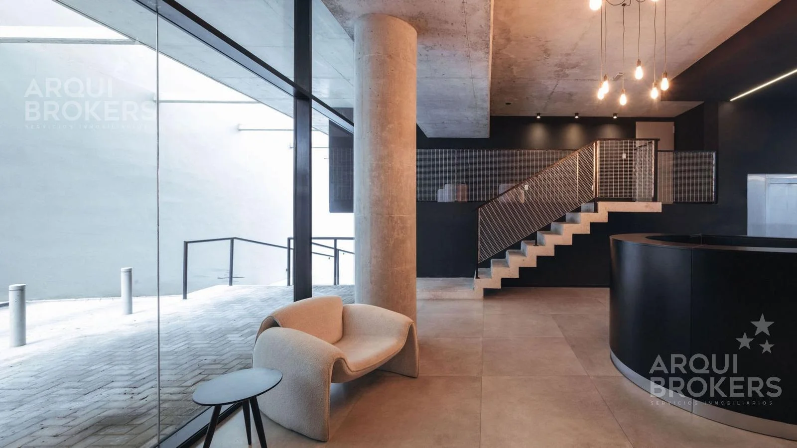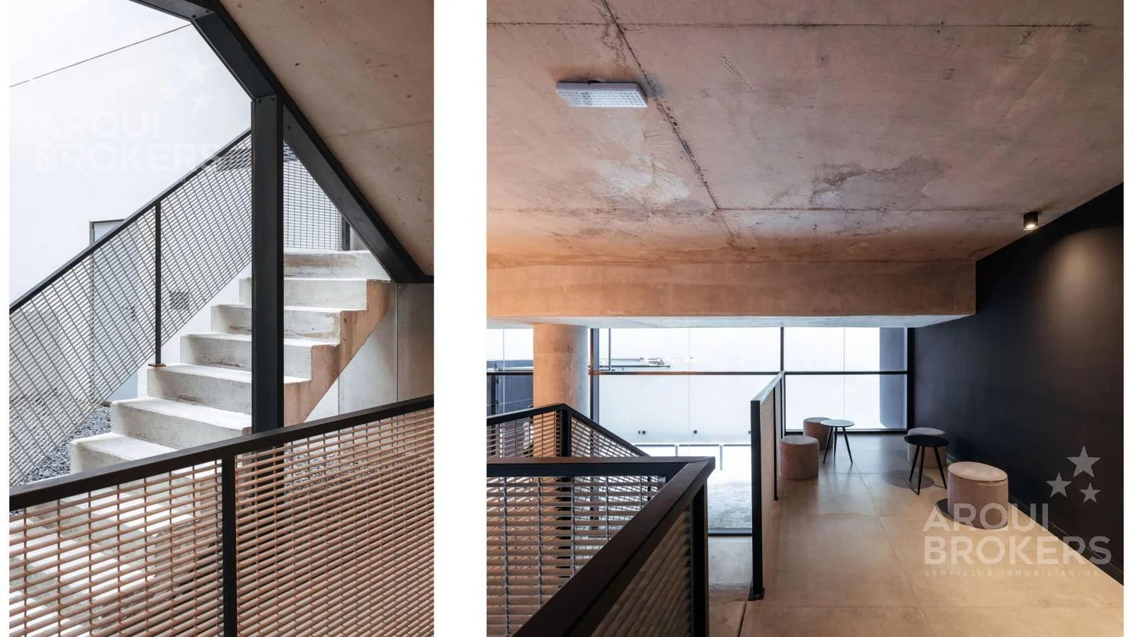Hall y espacio de Cowork vinculado con patio central, rooftop con vistas a la bahía y al Cerro de Montevideo, mirador, parrilleros, salón de usos múltiples, solárium, bike parking y laundry.