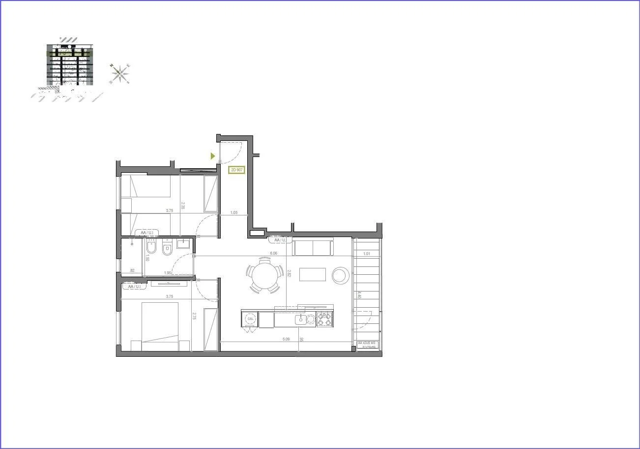 Apartamento de 2 dormitorios a estrenar en venta en Aguada.