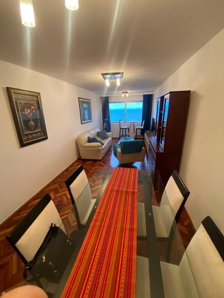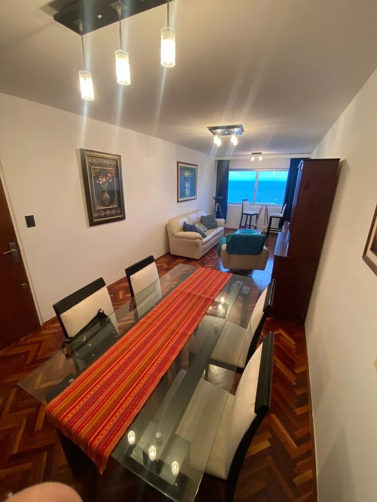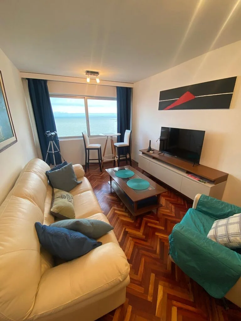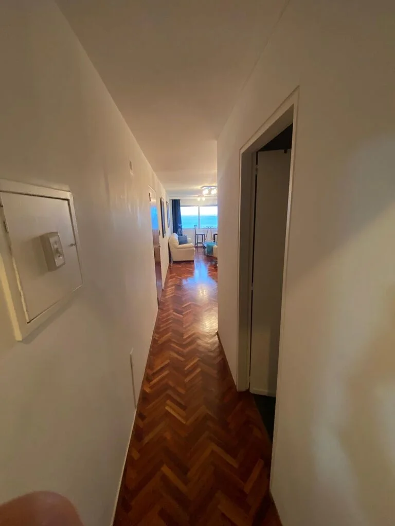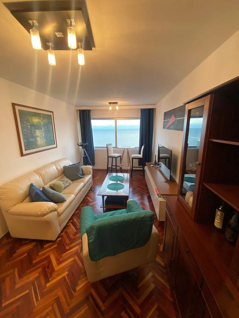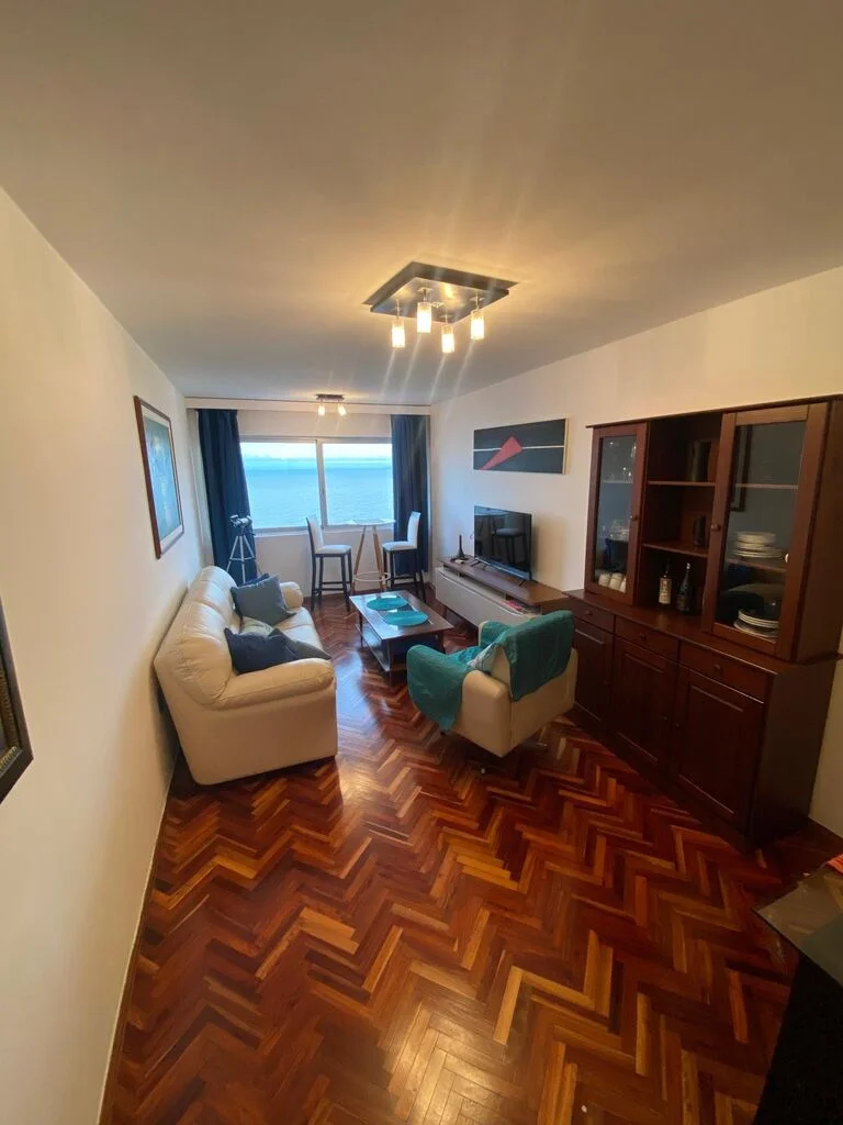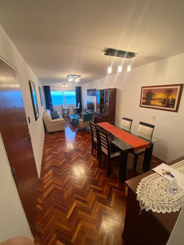 Hermoso apartamento sobre rambla de Malvin , living comedor con pisos de parquet recien pulidos , originalmente tenia terraza al frente pero se integro al living ( se puede volver a estado original)