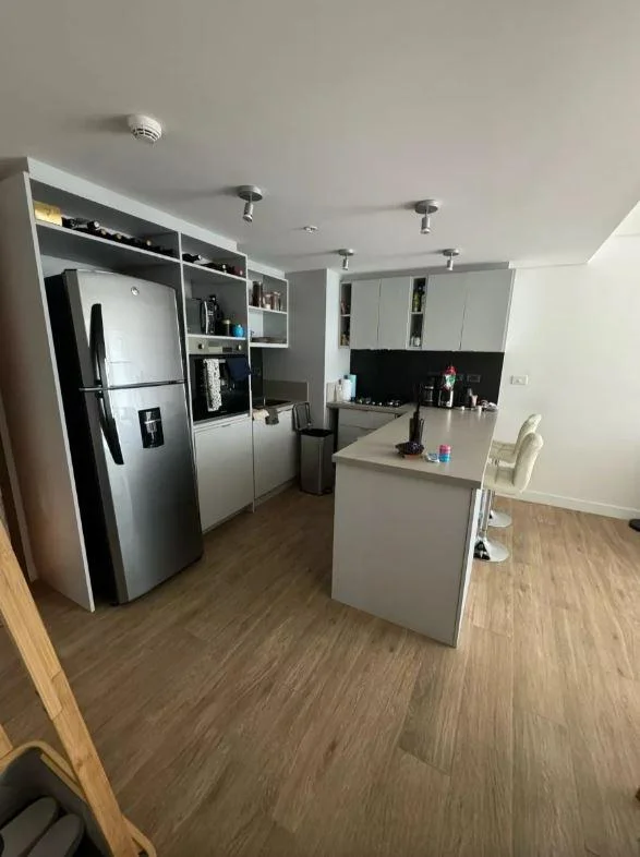 Barra y mesada en cuarzo, amplio espacio de guardado