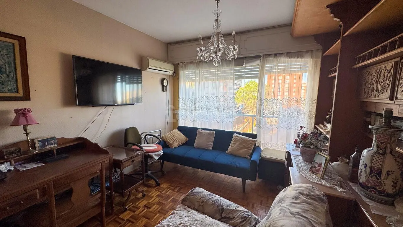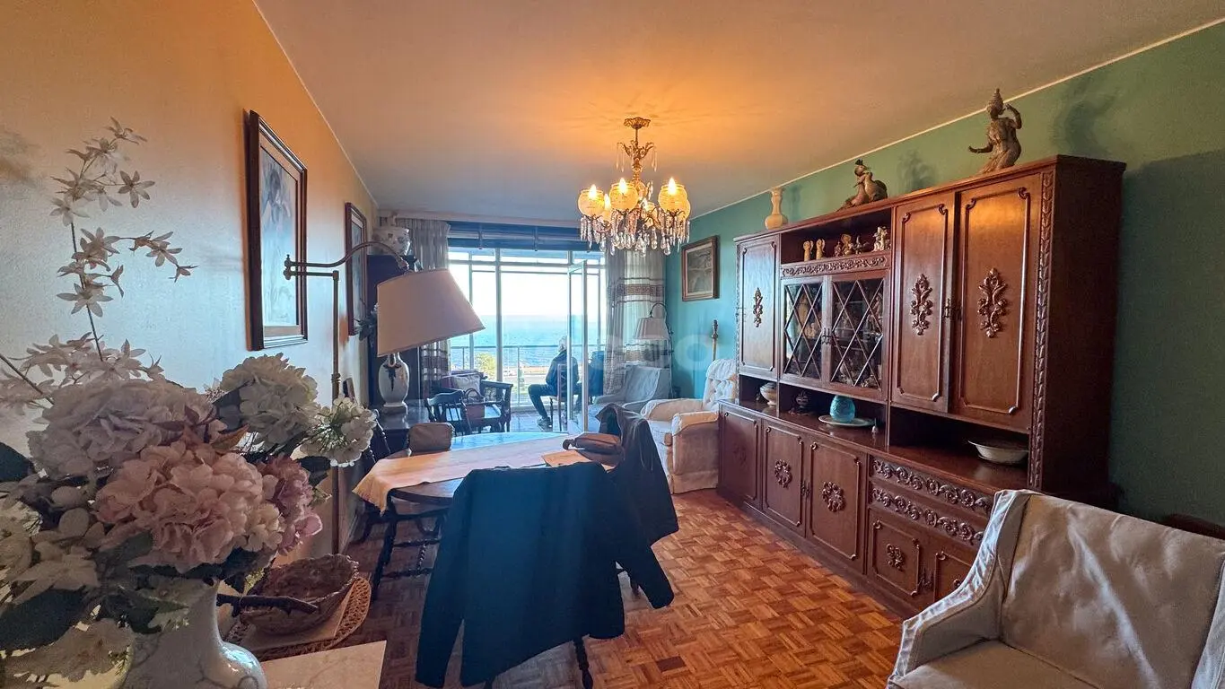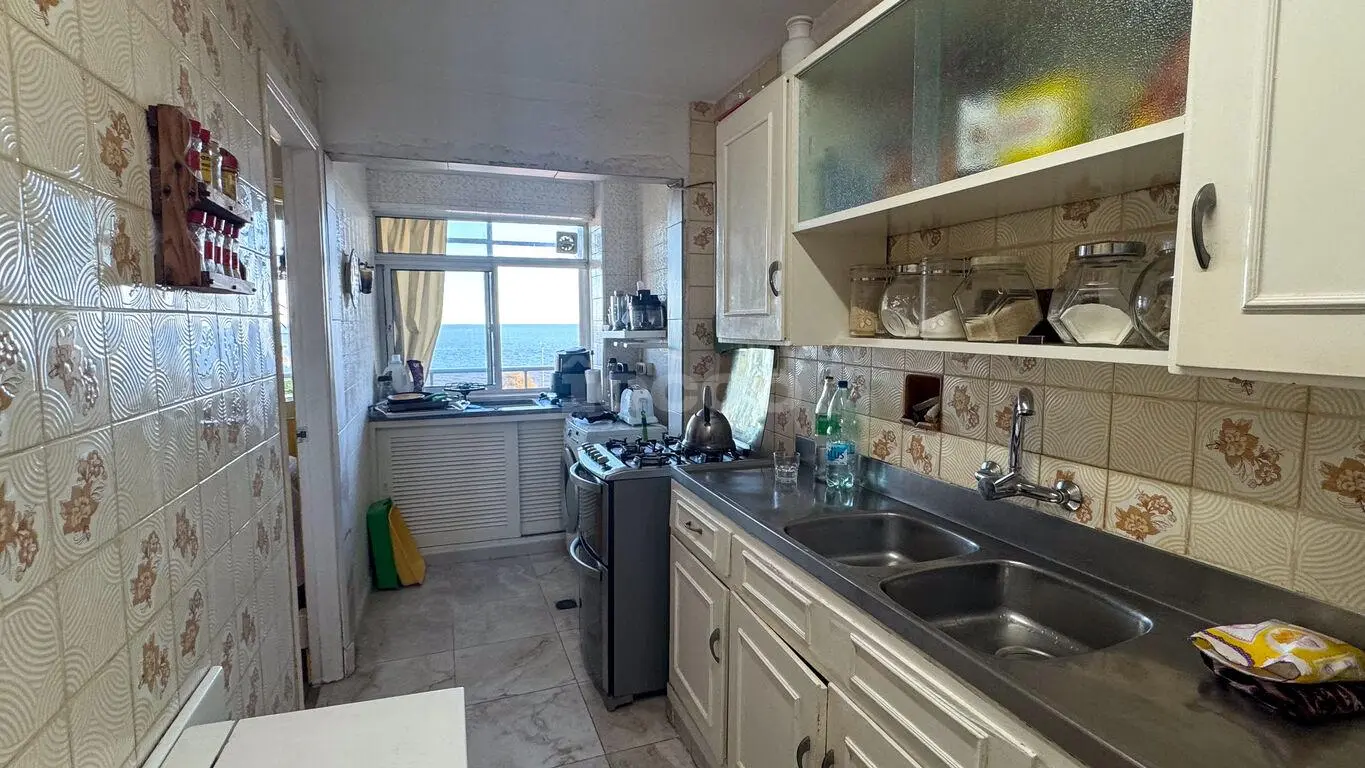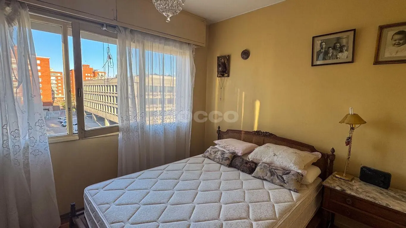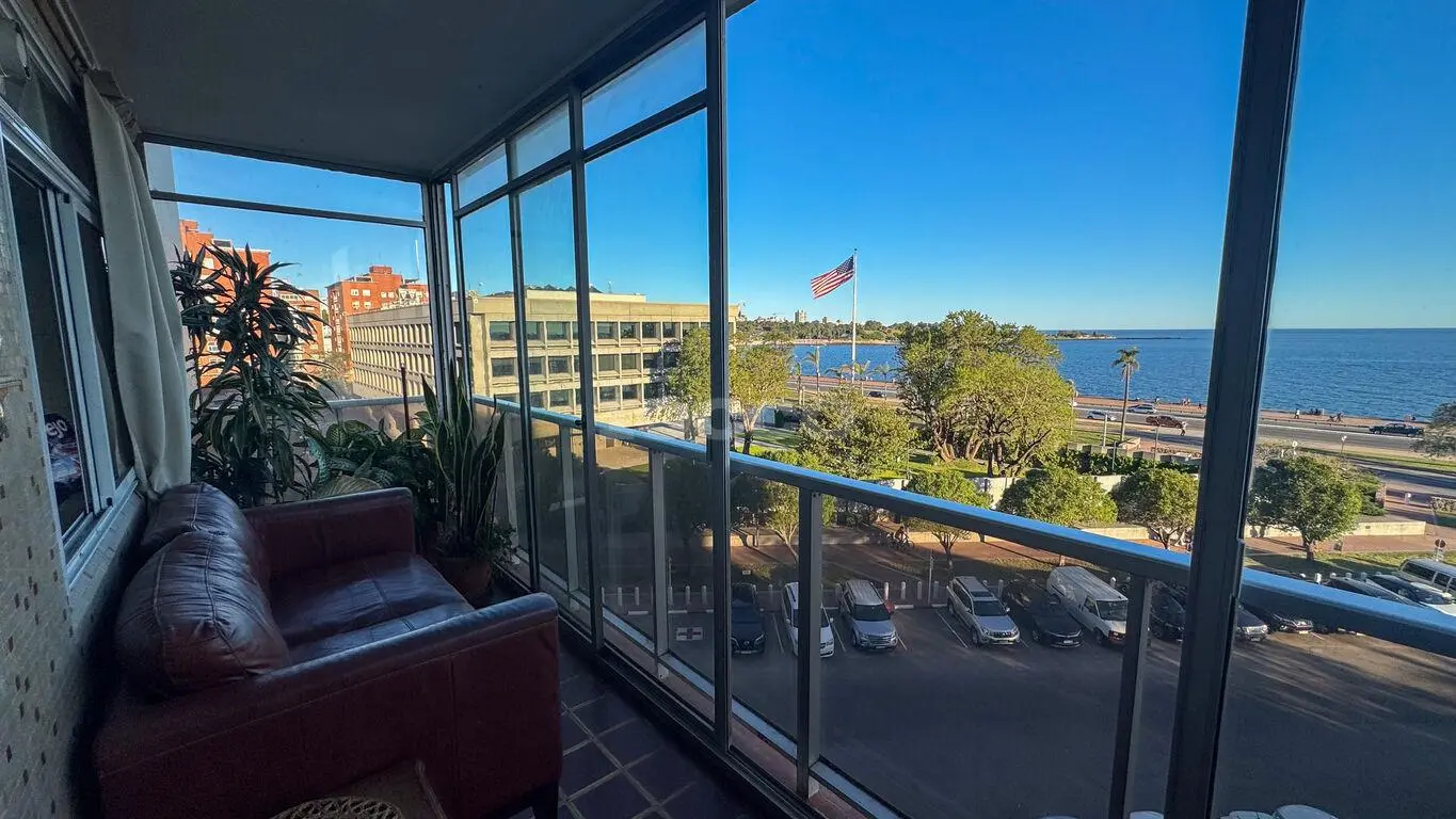 Venta - Apartamento en Palermo con vista al mar Edificio Lamaro – destacada realización de la firma Pintos Risso. La unidad se distribuye: • Living-comedor al frente con terraza cerrada de 11 m² y vista despejada a la plaza y al mar. • Cocina definida al frente y dormitorio de servicio con baño. • Área íntima: 2 dormitorios con placares empotrados, vista a calle Gaboto y parcial al mar. Hoy uno de los dormitorios aplicados a estar diario. • Baño completo al centro • Pisos de parquet en living y dormitorios; cerámica en cocina y baños. • Calefacción central • Sin garage Superficie: 79. m2 + 11 m2 – Terraza de uso exclusivo. Total 90 m2.