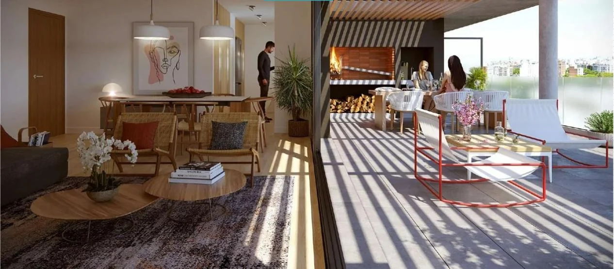 Living Comedor con salida a Terraza con Cocina Integrada.