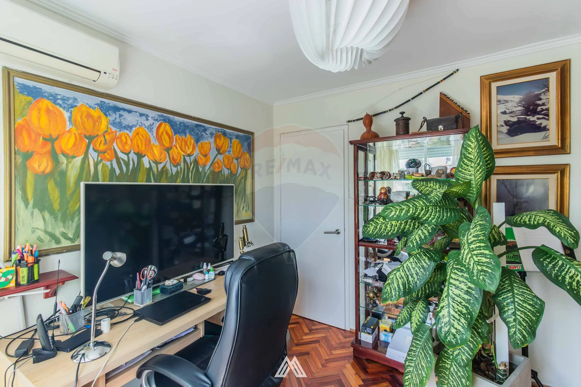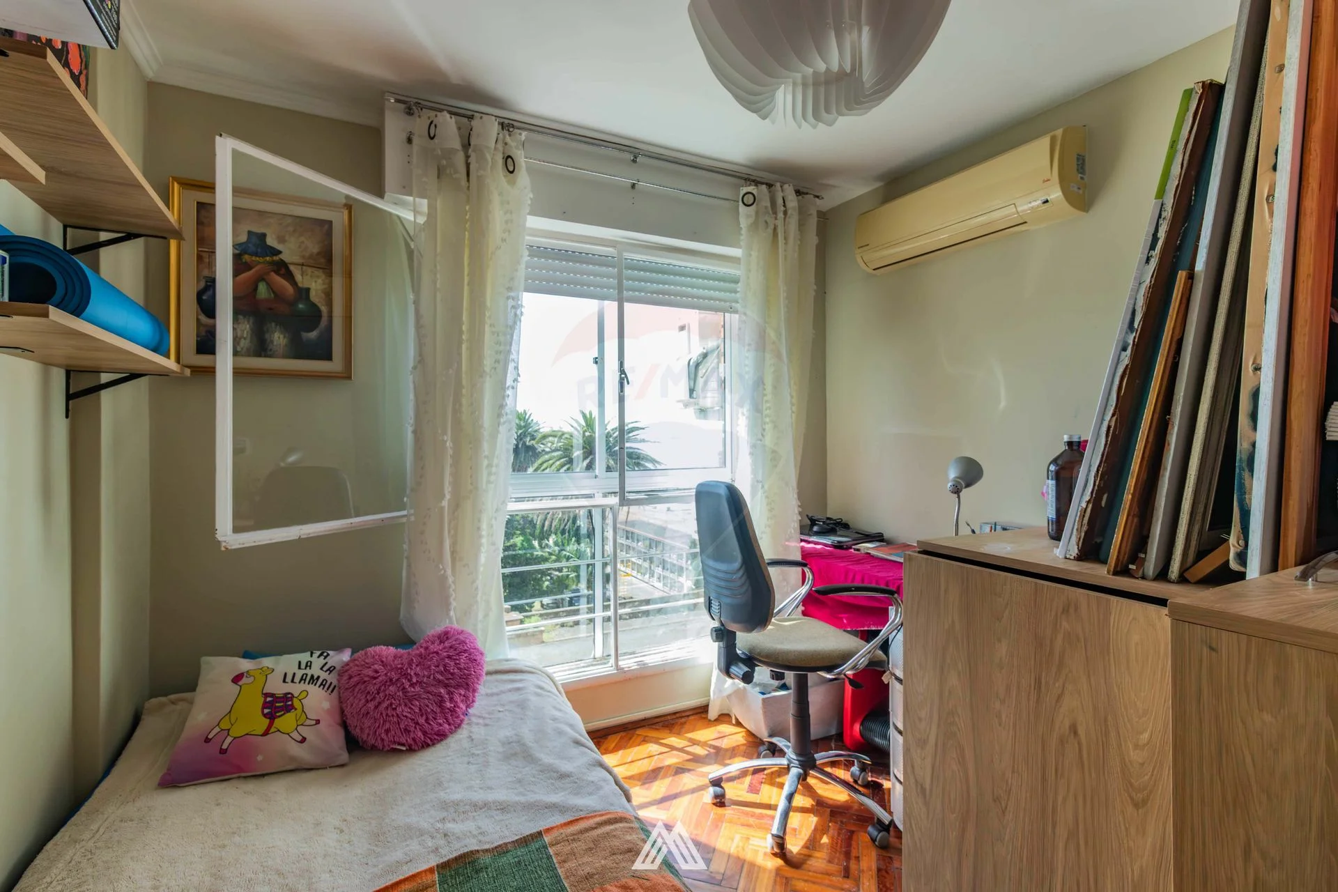 Cuenta con tres dormitorios, todos con placares y grandes ventanales que aportan excelente luz natural. El pasillo de distribución hacia los dormitorios incluye un placard adicional de muy buen tamaño. Los pisos de parquet se encuentran en excelente estado, realzando la calidez del apartamento.
