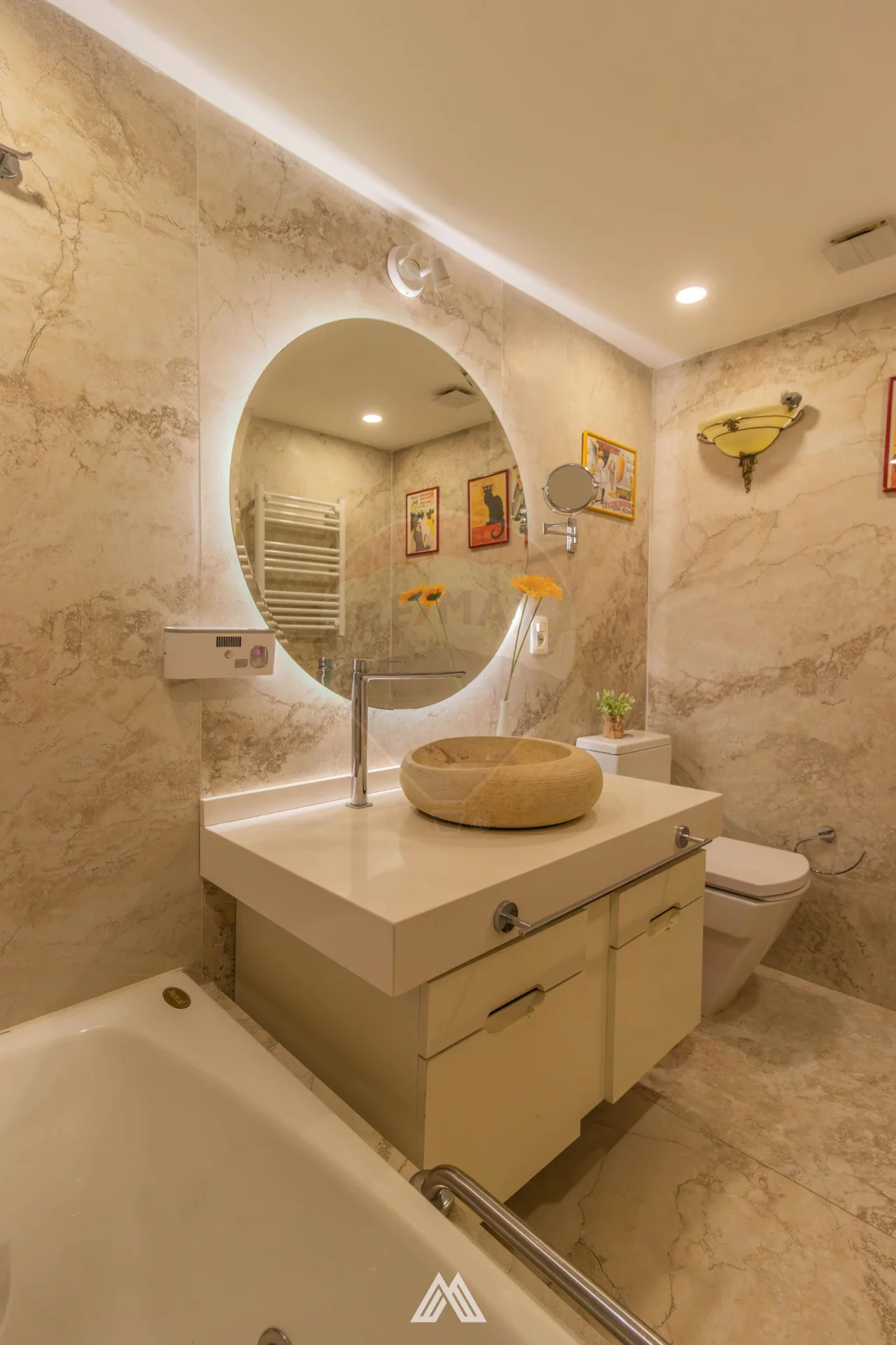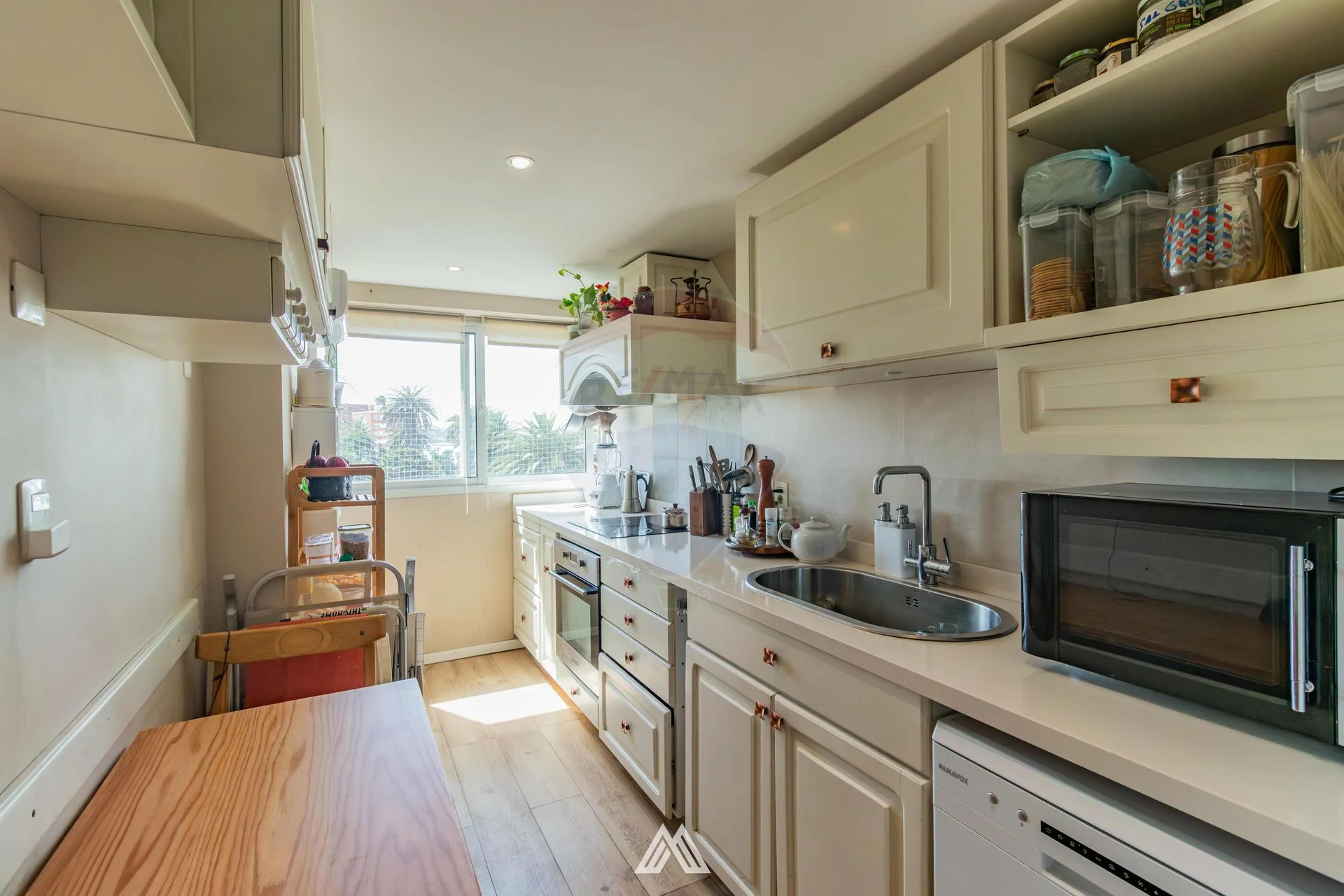 La cocina también fue totalmente remodelada. Posee un diseño muy funcional, con placares modernos, especieros integrados y un espacio especialmente planificado para optimizar el almacenamiento. Además, cuenta con un placard cerrado que oculta la lavadora y el secarropas, logrando una integración estética impecable. La cocina tiene espacio suficiente para una mesita, y actualmente cuenta con una pequeña mesa con dos sillas ideal para desayunar.