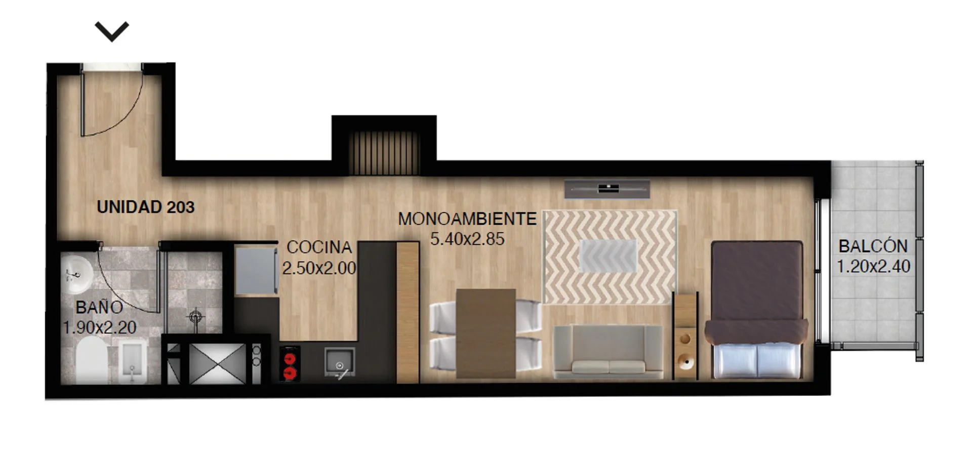 La unidad en venta es un monoambiente con balcón