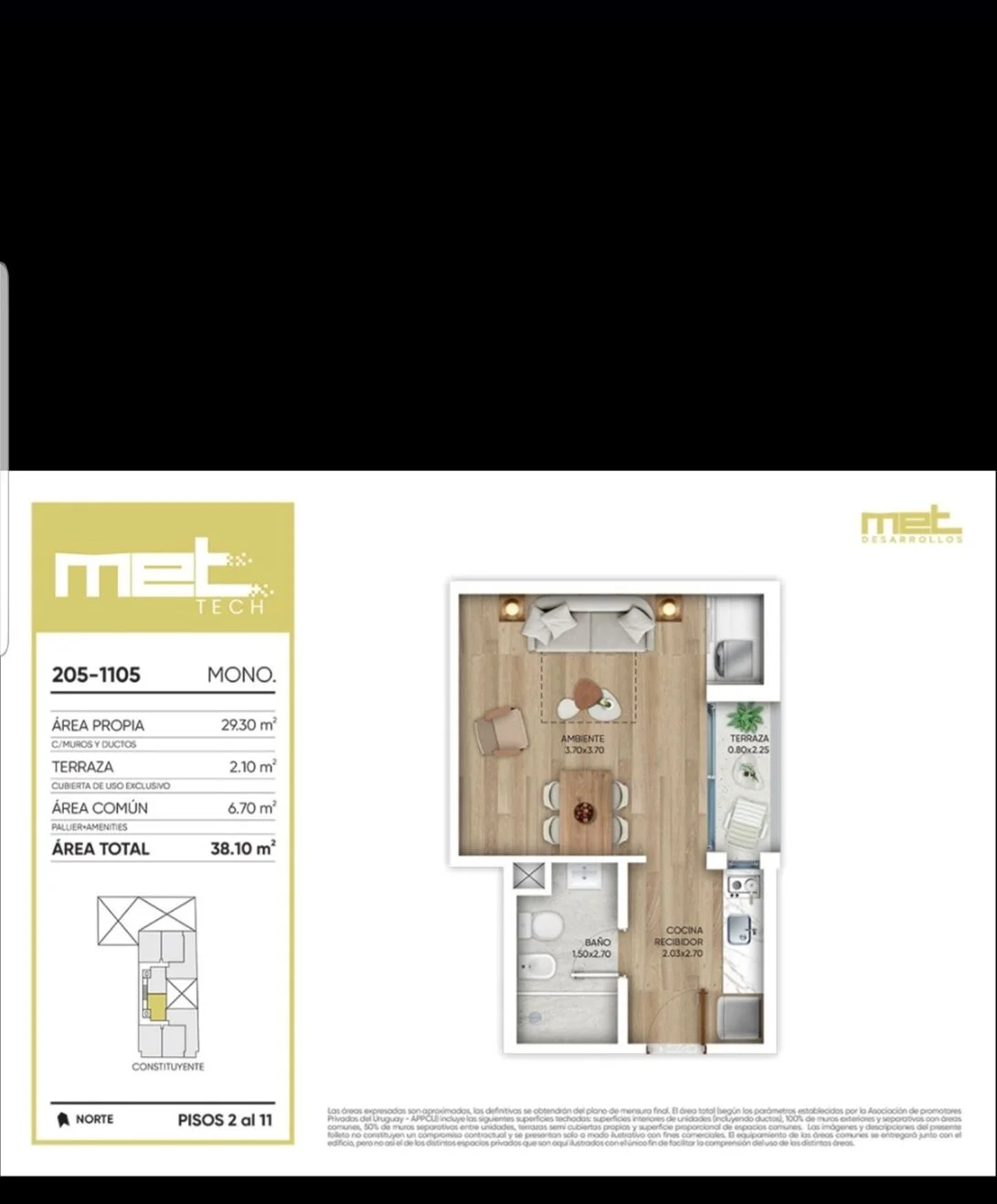Monoambiente a estrenar en Met Tech – Piso 5 contrafrente