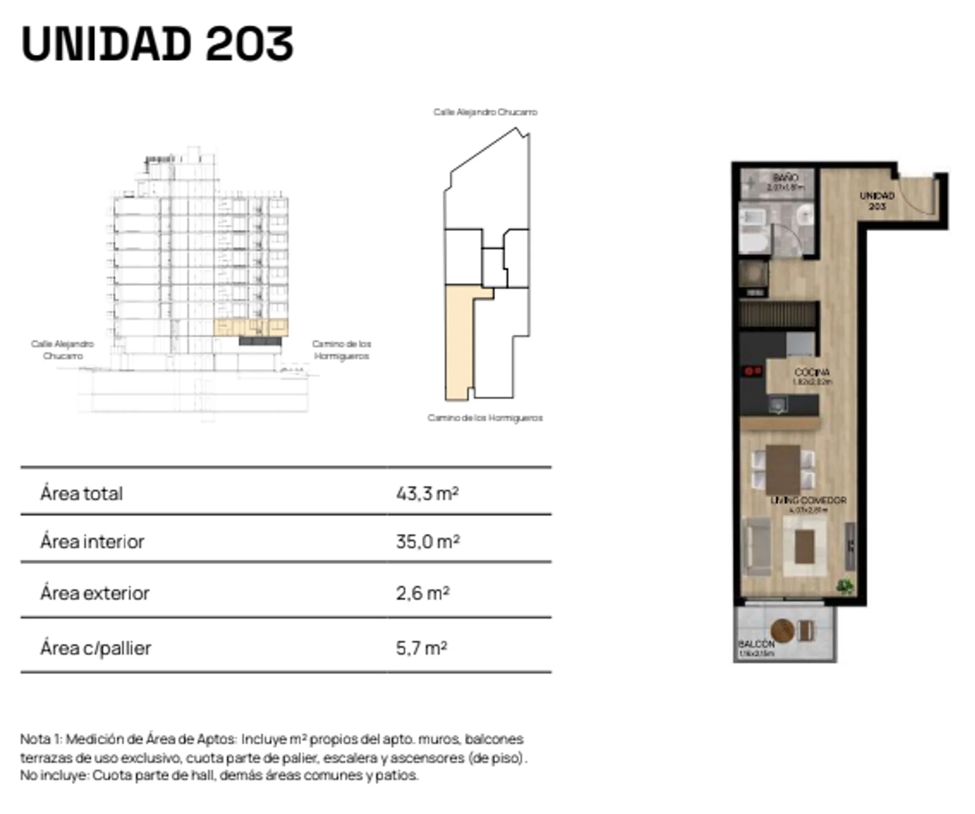 La unidad es un monoambiente con balcón que da a la calle Camino de los Hormigueros.