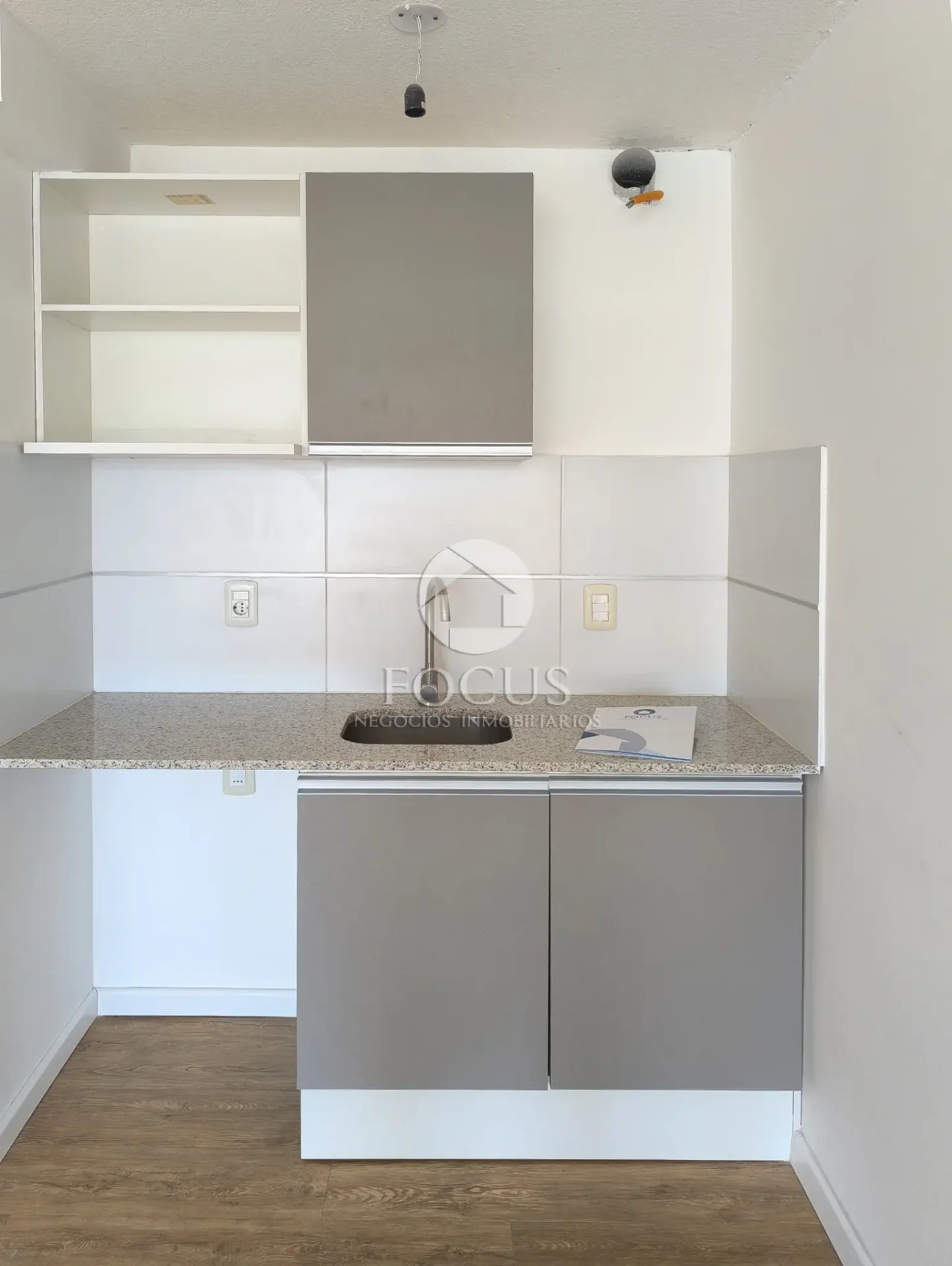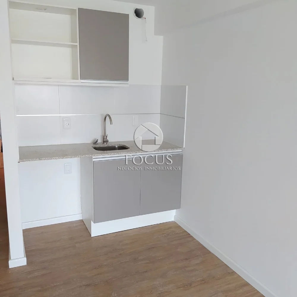 Cocina de concepto abierto, muebles sobre y bajo mesada.