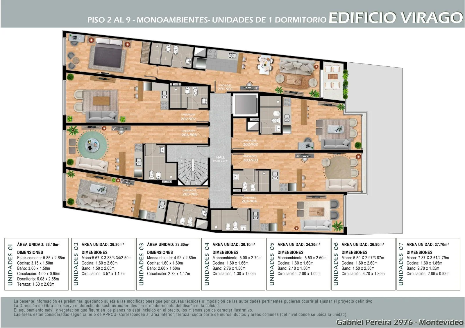 Apartamento en Séptimo piso al frente, con gran luminosidad. La unidad cuenta con cocina integrada, con muebles aéreos y bajo mesada. Baño completo de dimensiones generosas.